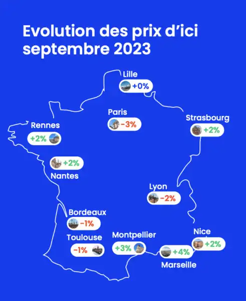 As for the 11 largest cities in France, the slowdown observed from the first confinement is still relevant. A few cities such as Paris and Lyon have started to bounce back since 2021. Also Lille, Nantes and Bordeaux, which are experiencing a positive but lesser evolution compared to the trends of recent years. Conversely, Marseille and Strasbourg remain the winners of the real estate market in these last 2 years, with significant increases, close to +9%.