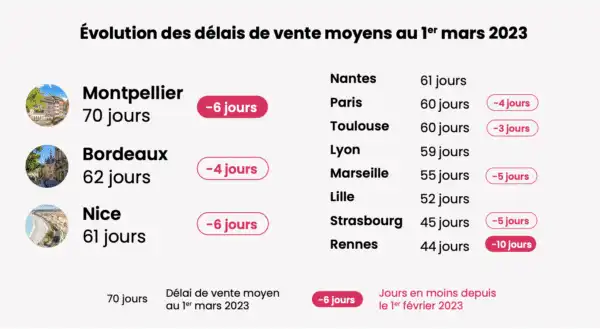 The only ray of sunshine in this context is that sales times are getting shorter in the main French cities. Since November, it has taken an average of one week less to complete a transaction, with four days gained in February alone. This faster decision-making by buyers is a positive sign for the market in the weeks to come because it contradicts the idea that the market has entered a stagnation phase despite the current economic situation. On the contrary, it shows that there is still a willingness to buy and that some sellers are willing to adjust their prices downwards without delay. In this respect, the shortening of the sales deadlines hits at a real estate spring that is certainly later and perhaps more timid than in previous years.