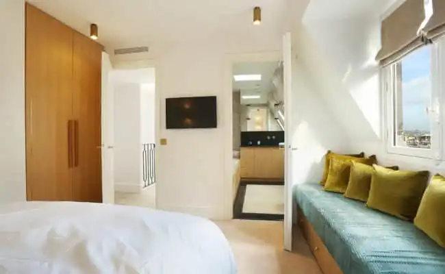 On the 6th and top floor, which is reached by a beautiful interior staircase bathed in light: