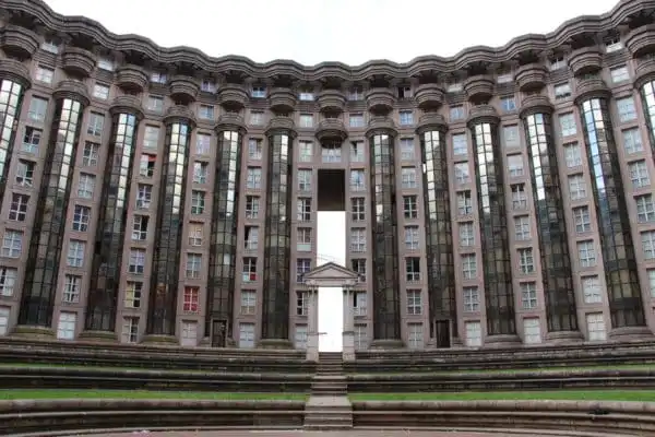 The residence of the Point-du-Jour in Boulogne-Billancours is the work of Fernand Pouillon. Built between 1957 and 1963, it was labeled a “20th Century Heritage” site in 2008. Emblematic of his work, this complex includes more than 2,000 residences and 25 buildings located on the banks of the Seine. The pool decorated with a sculpture, the façade covered in gold leaf… it seems nothing was too pleasing to the eye for this architect eager to promote beauty for all… before becoming the center of a wild scandal.