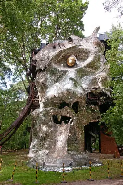 This sculptural work measuring 22.5 meters tall (about 74 feet) is a true visual and auditory experience.  The 300 ton giant of concrete and metal in the middle of the Milly-la-Forêt forest seems to be from another world.  It was built from 1969 to 1994 by a group of artists led by Jean Tinguely and Niki de Saint Phalle.