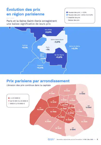 Since then, the capital has no longer been successful with buyers, who have purchasing power and money, and are in search of space and greenery. This has caused prices to slow down by around 3.4% in just fourteen months. If a return to 10,000€ per m² seemed hard to believe just a few weeks ago, the acceleration of this movement could be a game-changer. A further 2.7% drop in prices would suffice to drop below this symbolic threshold. However, this could happen in less than three months if the downward pressure continues at the same pace as it is now. A credible scenario, even though the months of December and January are known to be rather dreary periods on the real estate calendar. However, we will certainly have to wait until spring, an often decisive period and which sets the tone for the year, to know whether the phenomenon is set to continue. In addition, it will also take a few more weeks to appreciate the effects of a possible fifth wave of the Covid-19 epidemic.