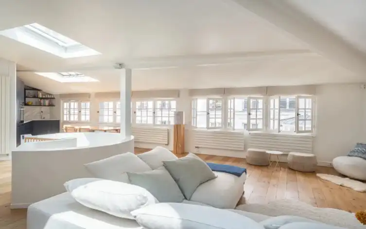 This former artist’s atelier, completely renovated with premium materials, carries a price tag of €3.39 million. While at first glance this approximately €21,871 per square meter price might seem high, it is consistent with other renovated properties in this sought after location. However, this property offers something few properties in this coveted area can: a private single family dwelling, which are typically priced much higher due to their scarcity.