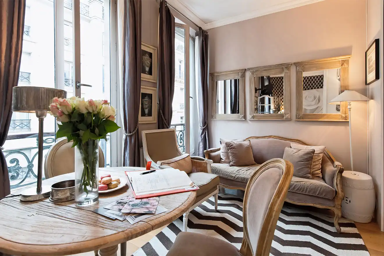 This stylish 25 m2 studio apartment is set on a charming street between trendy Saint-Germain-des-Prés and Place Saint...