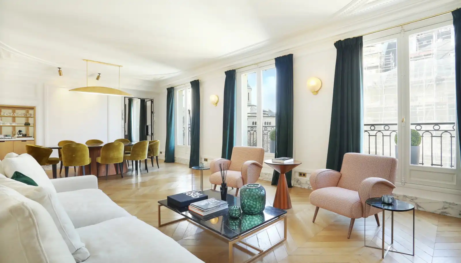3-bed, 3+ bath architect renovated Golden Triangle property in Paris with balcony and views