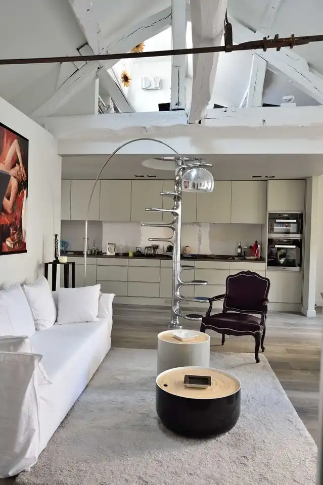 One can see St. Clothilde church from the living room and the top of the Eiffel Tower from the bedroom. The interior is...