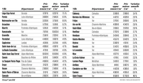 According to a study by MeilleursAgents, real estate prices have increased in almost all French seaside resort towns over the last twelve months, continuing a recovery that began two years ago.