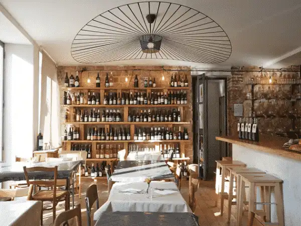Minimal decoration, walls of exposed brick, lights… guests feel right at home at En Vrac. The concept: wine, mostly organic, served directly from the vat in returnable bottles. Patrons pay anywhere from 4 to €8 per bottle, although the satisfaction of enjoying directly-sourced wine from organic winemakers is priceless. People stop by to fill their bottles, enjoy a glass with the super cool staff, and discover the selection, curated with love.