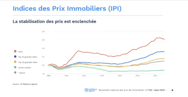 Overall, prices continued to increase at the national level since the start of the health crisis, just a year ago (+ 2%). However, Meilleur Agents has noted since the start of the school year a change in trend oriented towards price stabilization, at the start of 2020, which continued throughout France after the first confinement and the summer (+ 0.7% in Paris, + 1.9% in the ten largest cities, + 1.5% in the fifty largest cities and + 0.7% in rural areas between March 1 and September 1, 2020), but slowed since September.