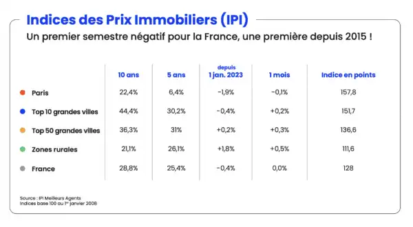 The real estate market in France experienced a rare setback in the first half of 2023, marking the first negative performance since 2015. Nationwide, prices declined by -0.4%, raising concerns among industry experts and investors. This downturn was especially surprising given that the first half of the year usually witnesses a surge in activity during the traditional spring season.