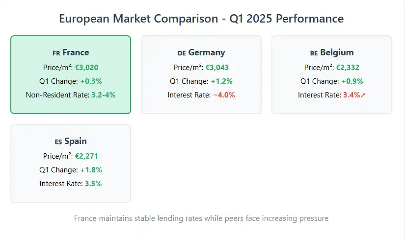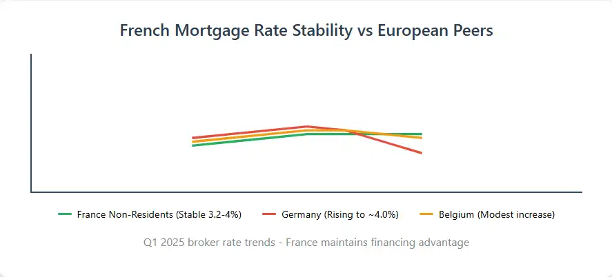 But consider the alternative: where else can non-EU buyers lock in sub-4% rates for up to 25 years? German banks are pushing toward 4% and getting pickier about foreign income. Belgian lenders are raising rates and adding restrictions. France, meanwhile, has maintained the kind of stability that makes CFOs and family office managers comfortable committing serious capital.