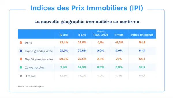 The new real estate geography observed by Meilleur Agents. The disenchantment with big cities is marked by an increased interest in the countryside. The hierarchy in terms of price increases until July 2020 was, at the top of the scale, Paris followed by the ten of the largest French cities and, at the bottom, rural areas. Today the standings are reversed. Since the start of 2021, rural areas have thus experienced the strongest growth at the national level (+ 6.6%). That is, more than double the figures recorded by the ten largest metropolises in France during the same time period. And above all … Far ahead of those in the capital (+ 0.1%).