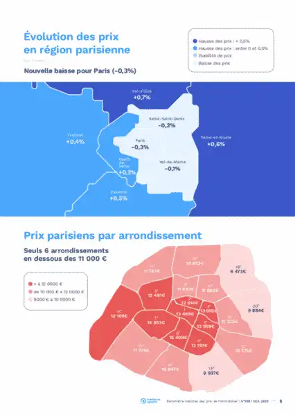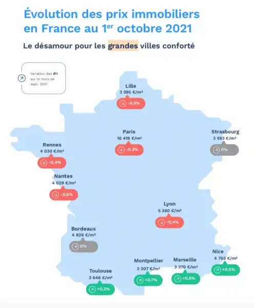 As such, the Paris region alone sums up this paradigm shift. The further away potential buyers move from the city center, the steeper the price increase. In one year, Paris has lost 1.2% while the inner suburbs gained 2.7% and the inner suburbs 5.2%.