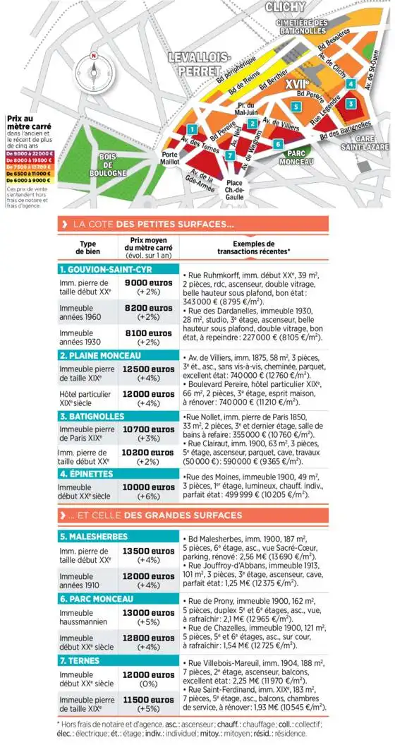 As far as well-off families are concerned, they avoid certain arteries because of the school zoning. Thus rue de Salneuve, rue de Tarbé, and part of rue de Saussure have been abandoned. They fall under the zoning of the new Collège La Rose-Blanche. To note finally: apartments beyond a million euros suffer a sharp discount at even the slightest defect. A ground floor apartment at 209 square meters on rue Theodule-Ribot, yielded 1.55 million euros, or only 7,415 euros per square meter.