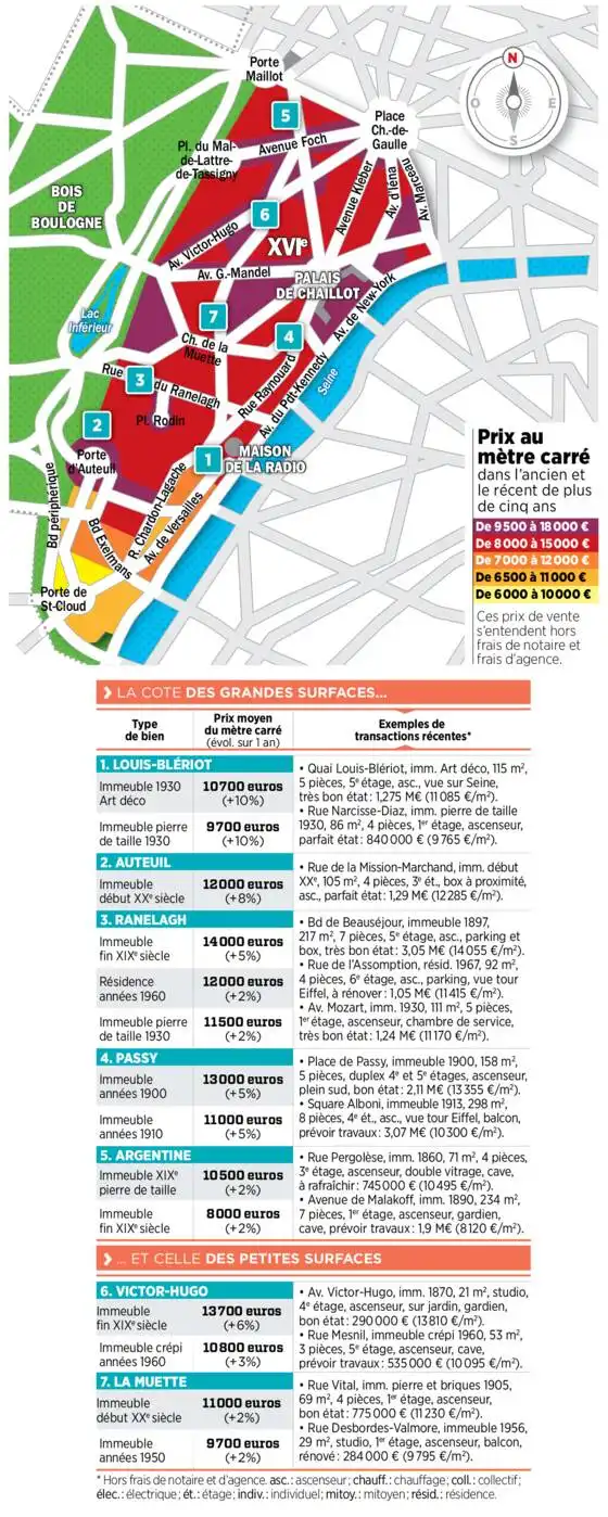 Some neighborhoods, however, are in high gear, like Auteuil, up 10 to 20%, where buyers must pay around 12,000 euros per square meter. In the heart of the Village d’Auteuil, an apartment of 60 square meters even went for 810,000 euros. The buyers found this price of 13,500 euros per square meter affordable compared to prices on the Left Bank where they came from. The sixteenth doesn’t only attract this type of buyer, however, and a general decline in traditional (lower budget) clientele from the fifteenth has been noted.