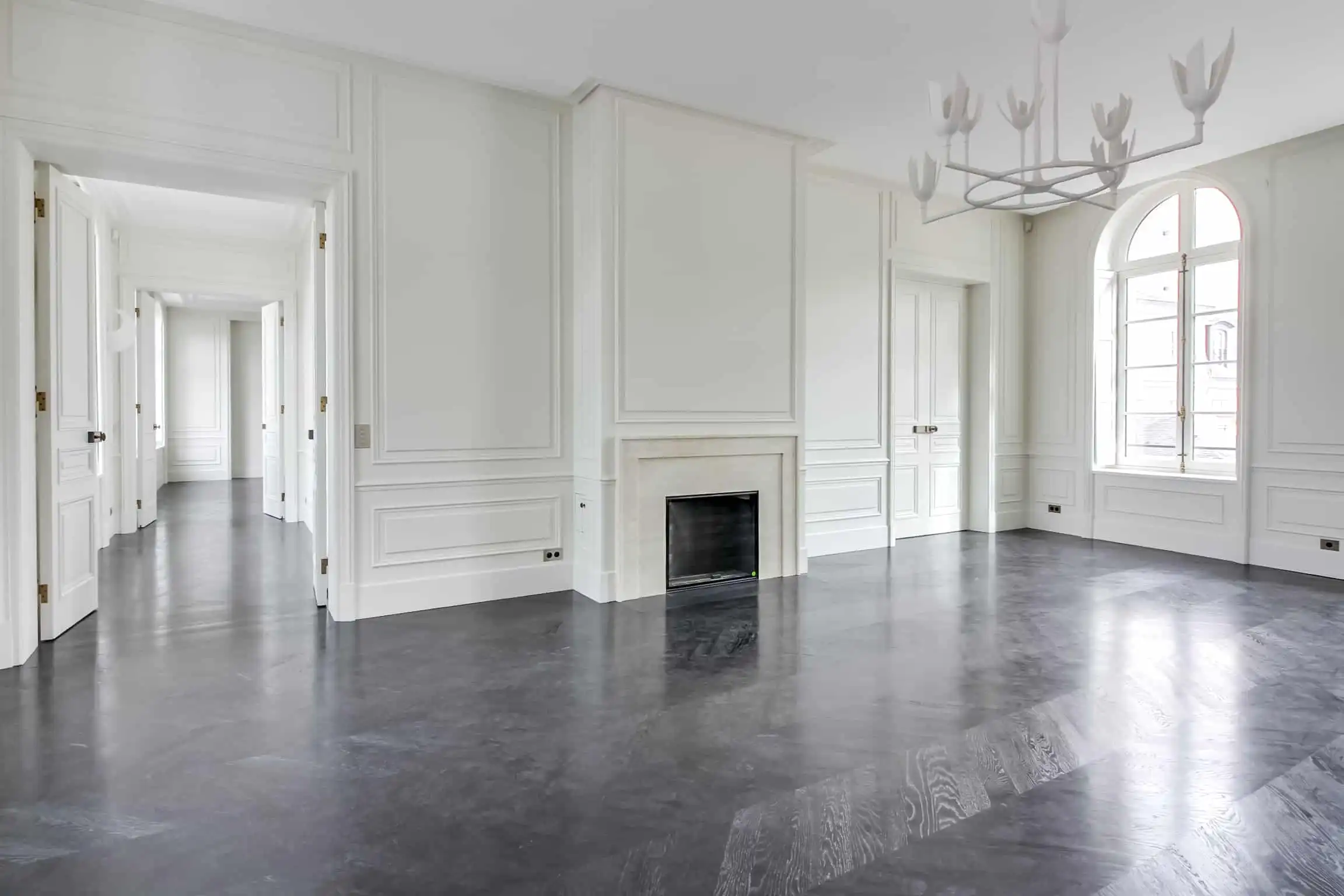 This recently renovated triplex sits in an 18th-century building with elevator and has been recently renovated to a superb standard. A huge living room with windows on either side, ebonized herringbone wood parquet floors and a stone fireplace encapsulate high-end Paris living.