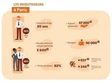 On average, the rental investors in the first group were 36 years old, had one child, and generally bought as a couple. They earned an average net monthly income of €2,855 per person and were able to put down 3.6% of the purchase price of the property, or about €6,600.  58% of these rental investments were made outside of Paris.