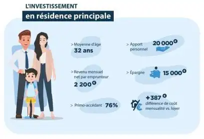 76% of those planning to purchase their primary residence this past year were first-time buyers. 60% were between 26 and 36 years old (32 on average), predominately purchasing as a couple with a net monthly income of €2,175 per person. Their down payment was about 8% of the purchase price of the property, i.e. around €20,000.