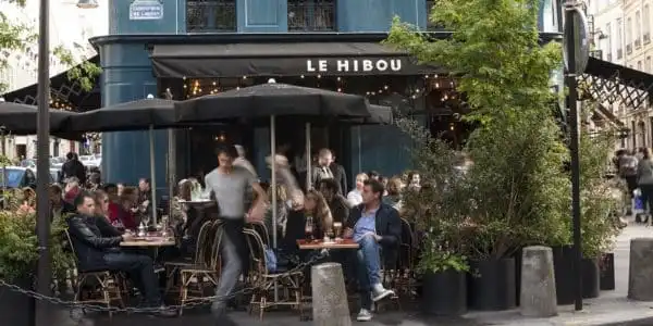 Next stop Odéon, where small trendy bistrot Le Hibou is easily recognizable by its blue awning and large, open heated terrace. A favorite among Parisians, interested parties should arrive early if they hope to find a place under the heat lamps.