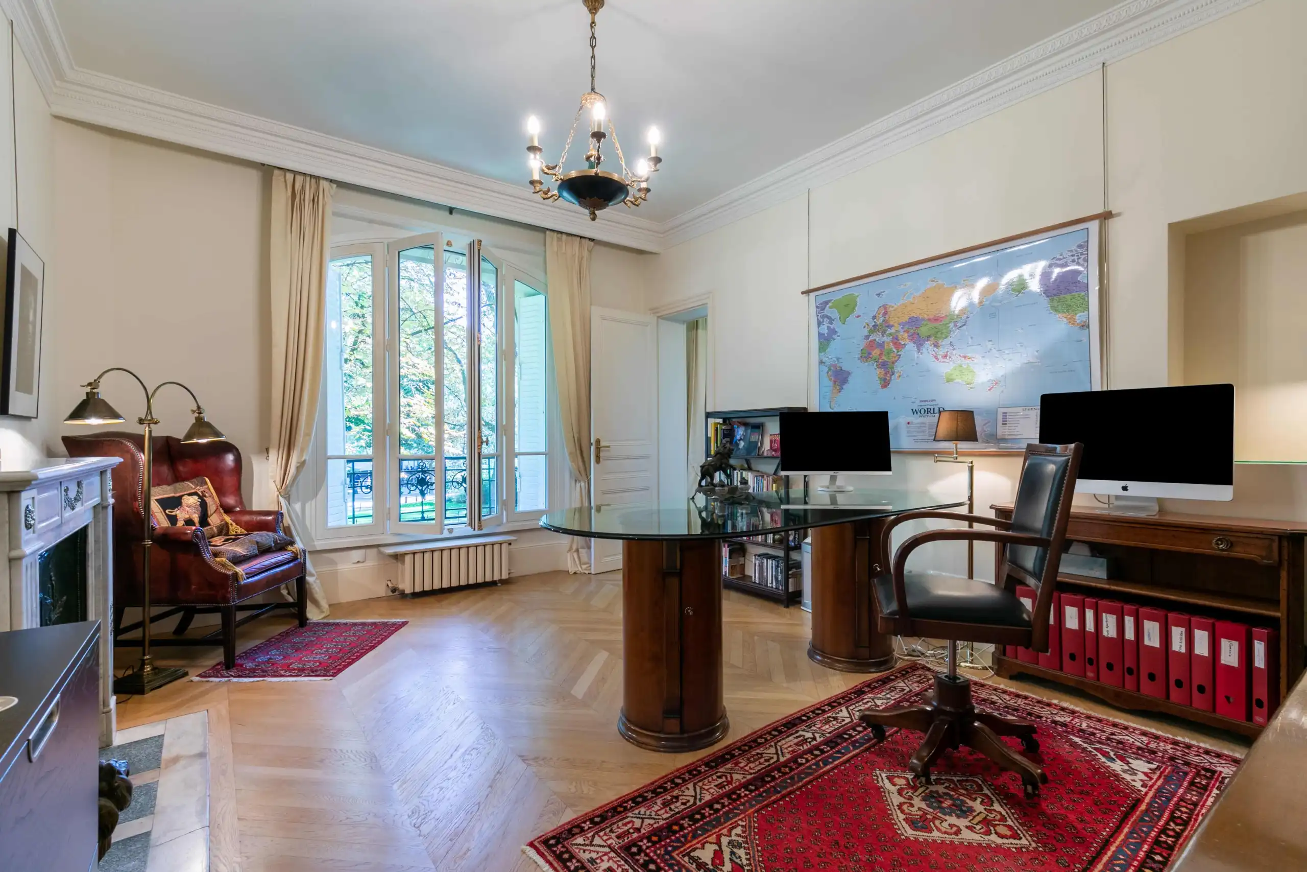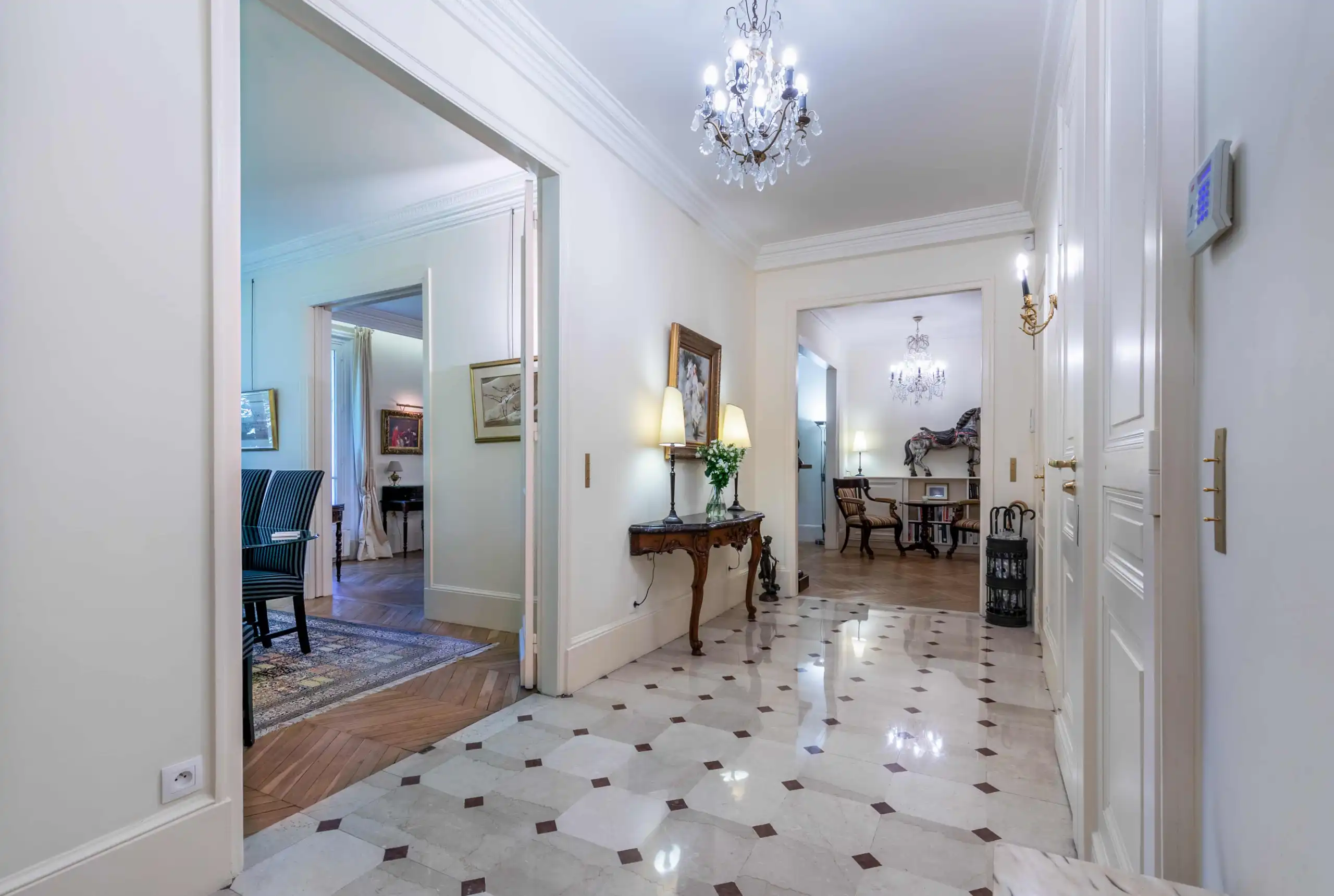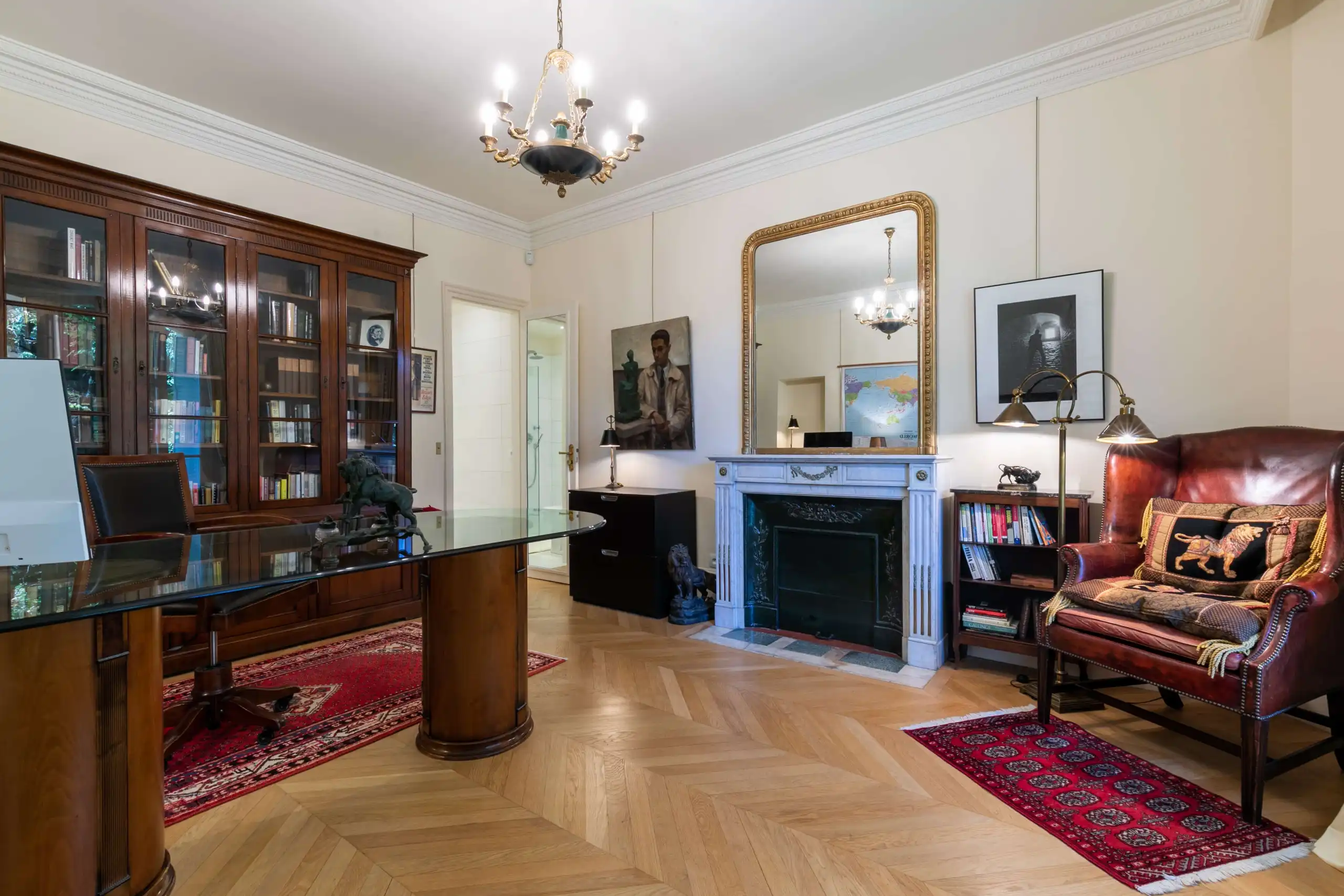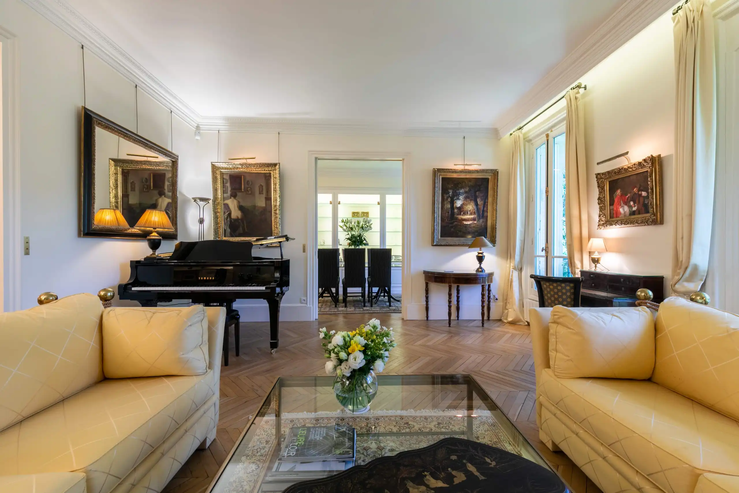 This superb apartment is on the first floor (second floor American) of a fine turn-of-the-century stone building with a caretaker and an elevator / lift located directly on the Champ-de-Mars.