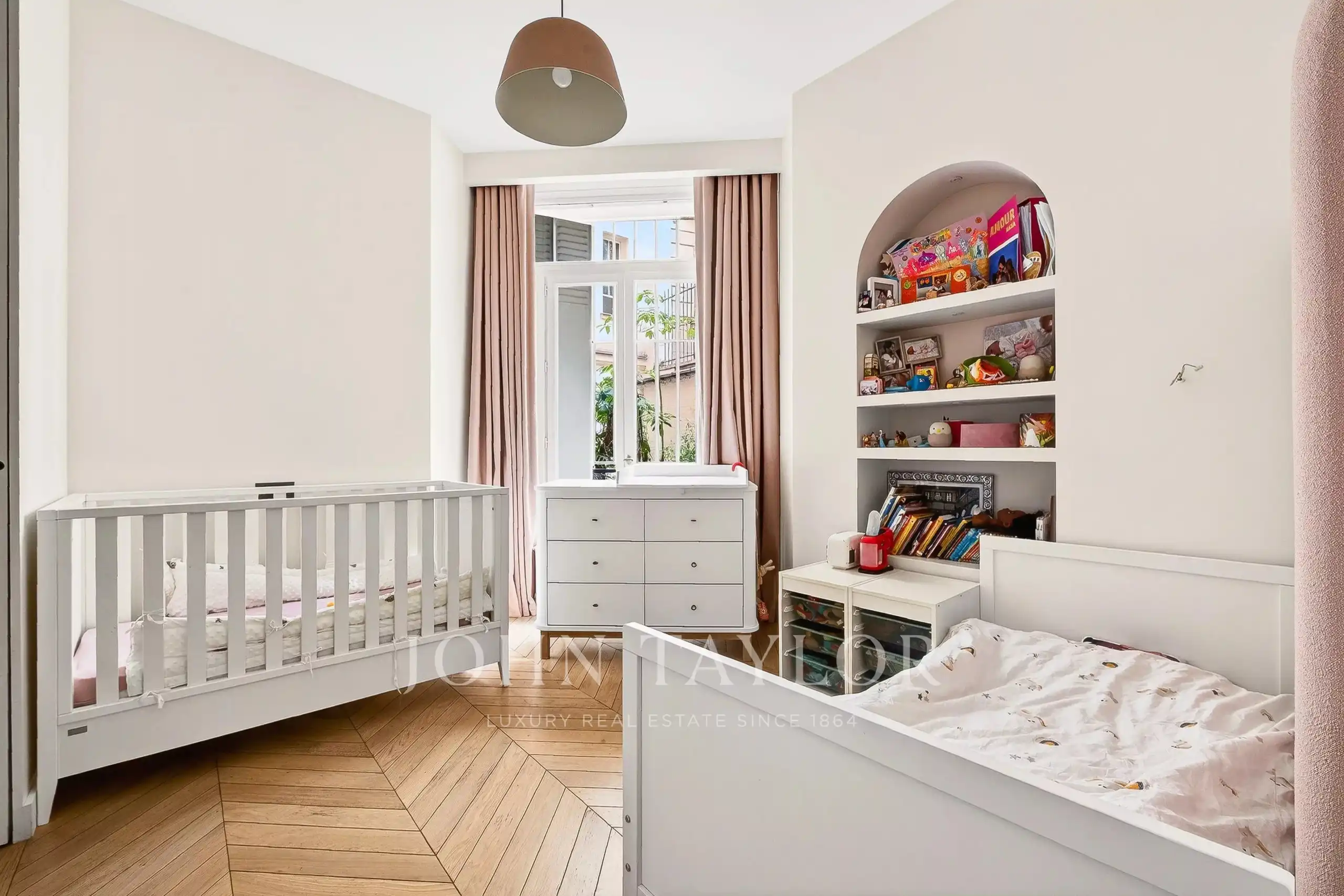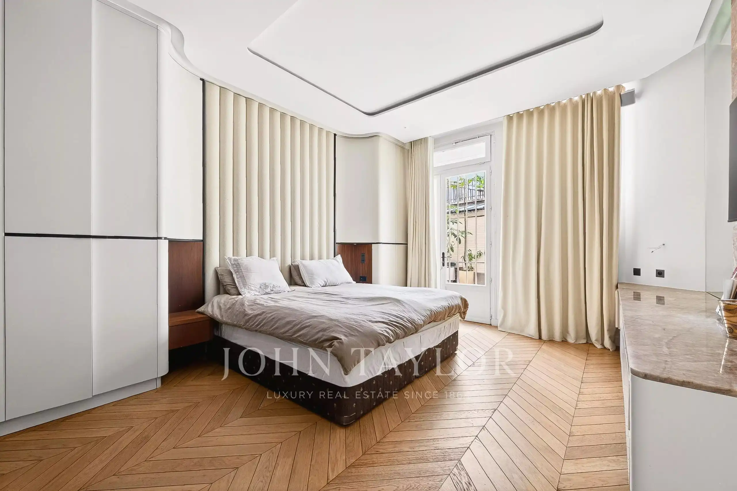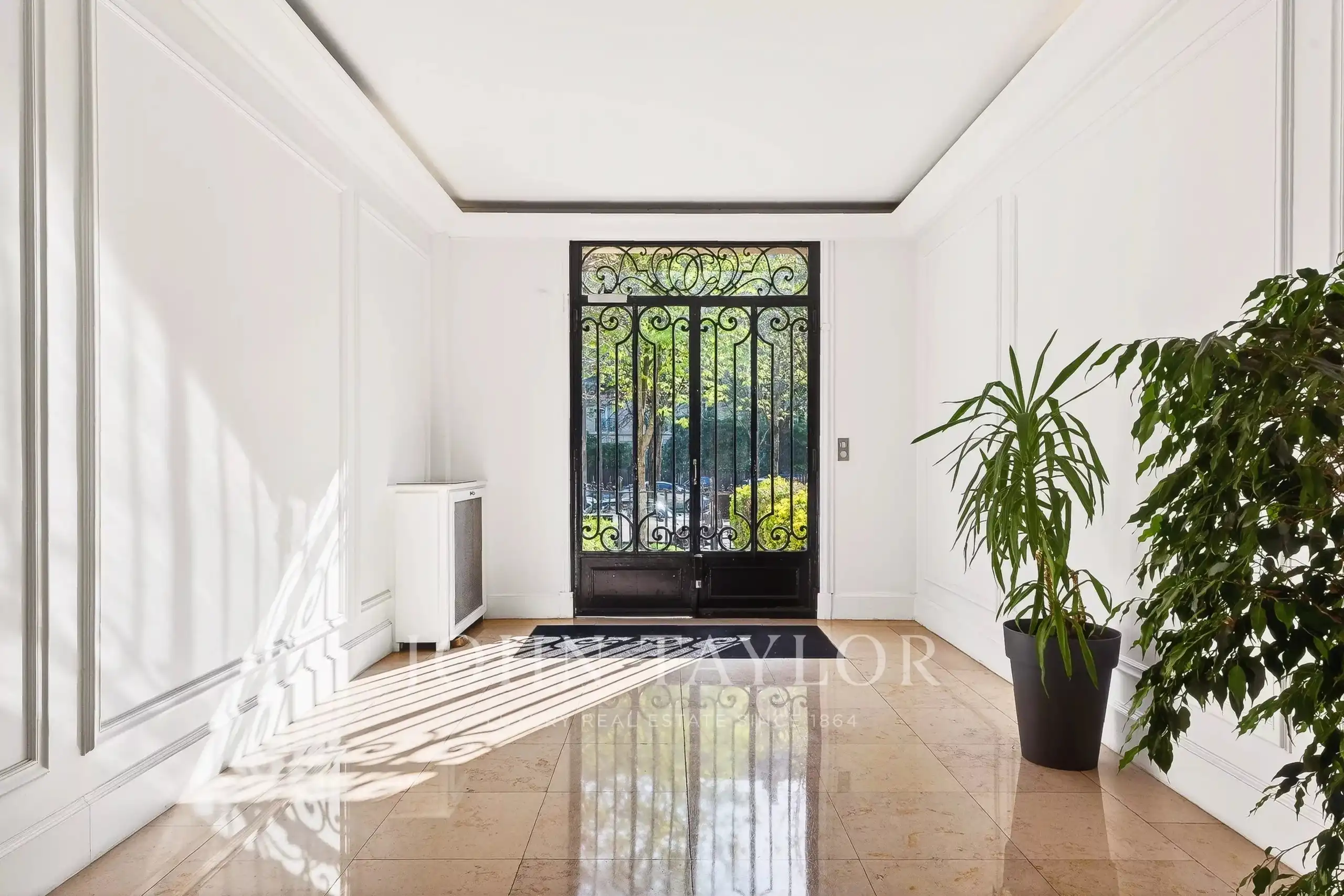 Set on the garden level of a full-service stone building in the 16th, this 157 m² residence was gut-renovated in 2022 by a noted architect. Southern exposure, smart home automation, full air conditioning, and two independent entrances. Three bedrooms, each with its own en-suite bath. A proper eat-in kitchen. A wine cellar.