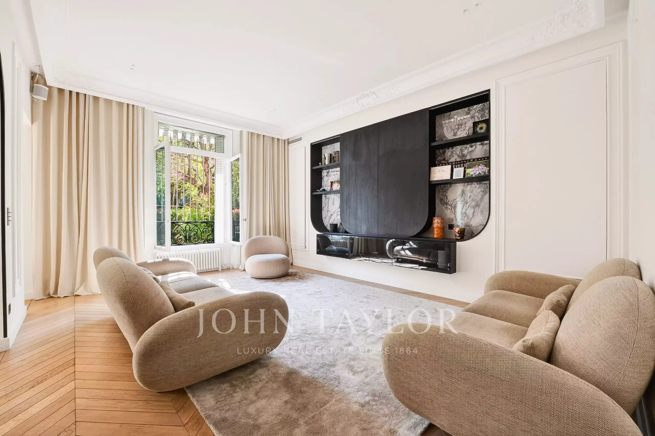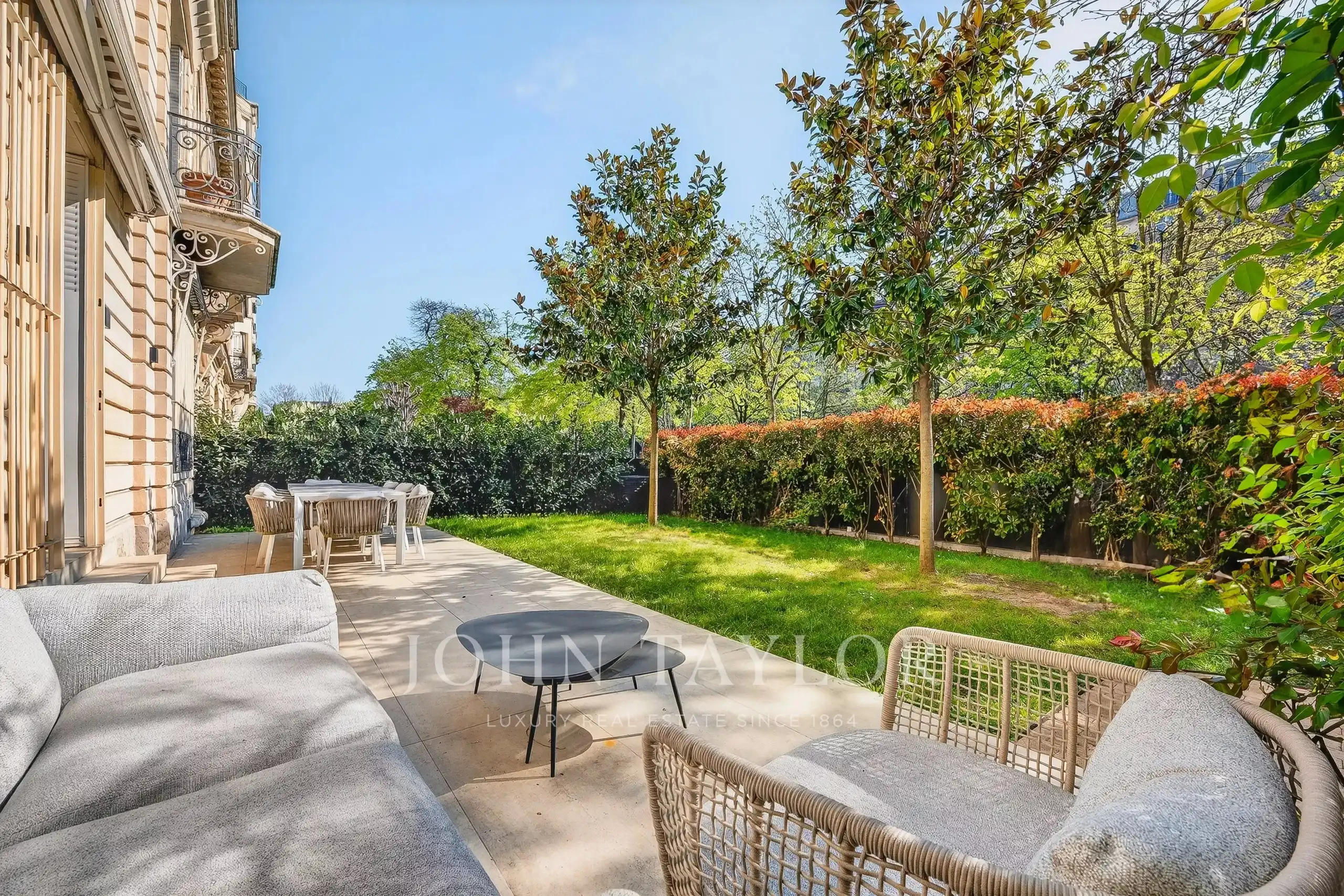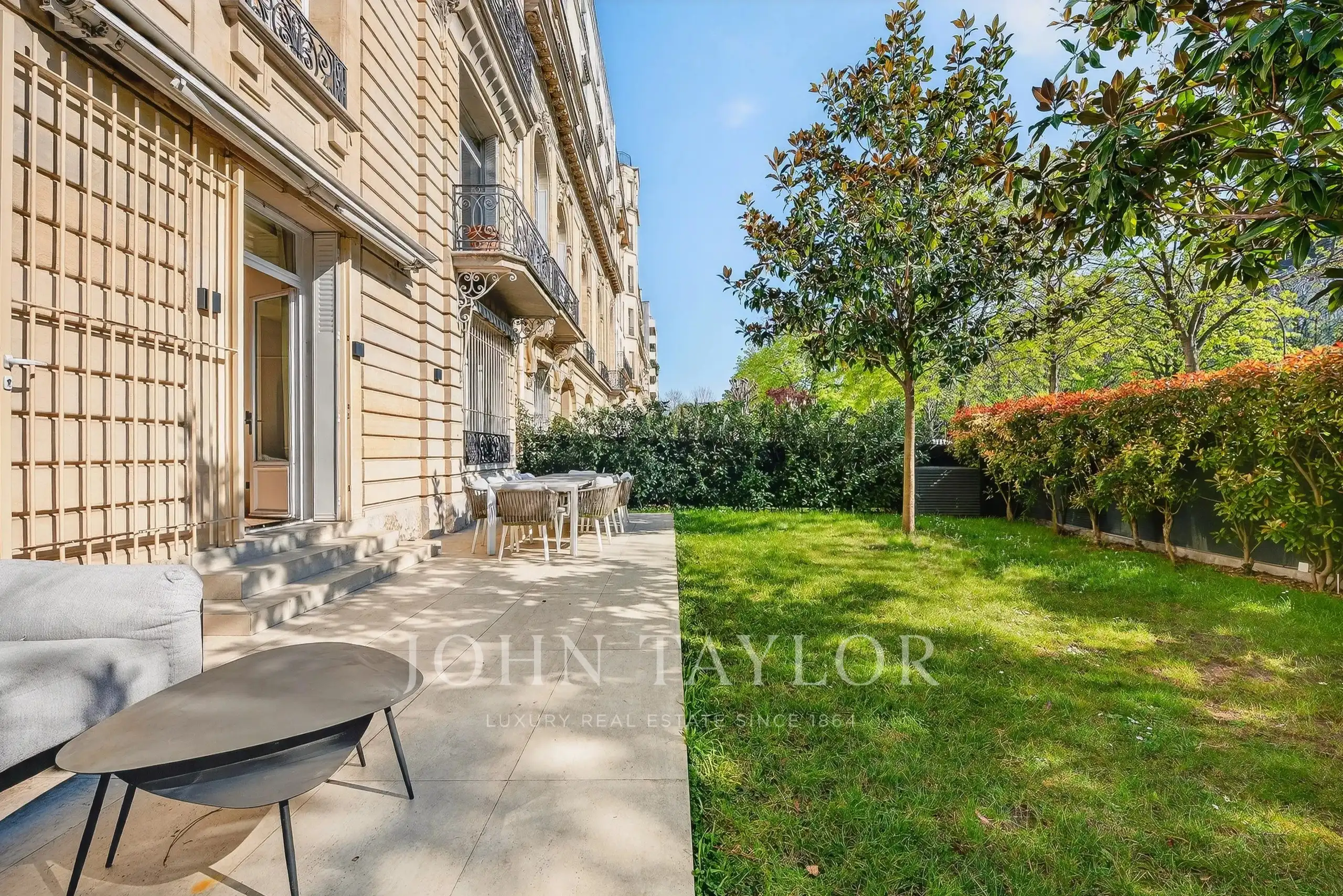 Step out of your living room and into your own 130 m² private garden, the Eiffel Tower in full view. That's the daily reality here.
