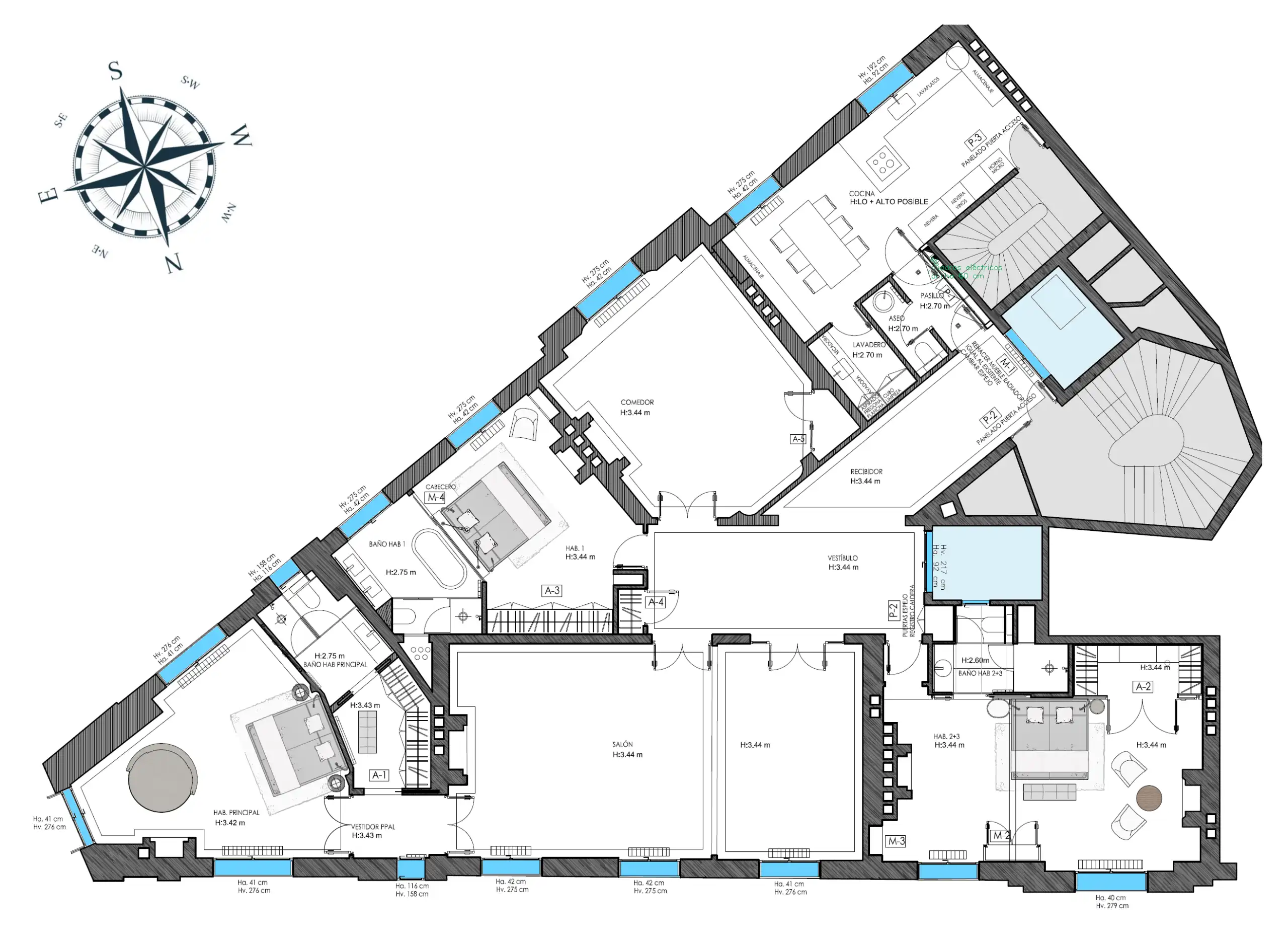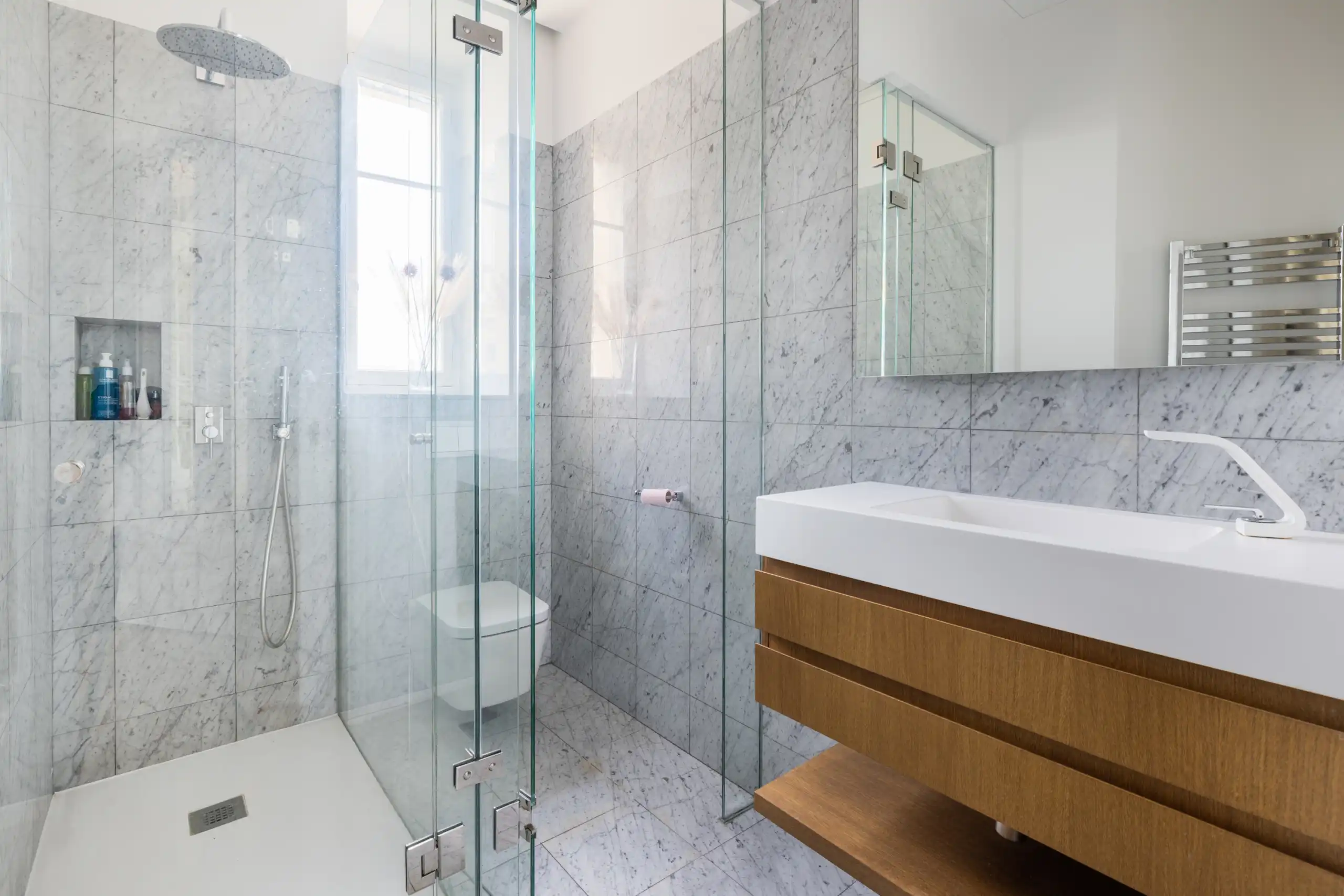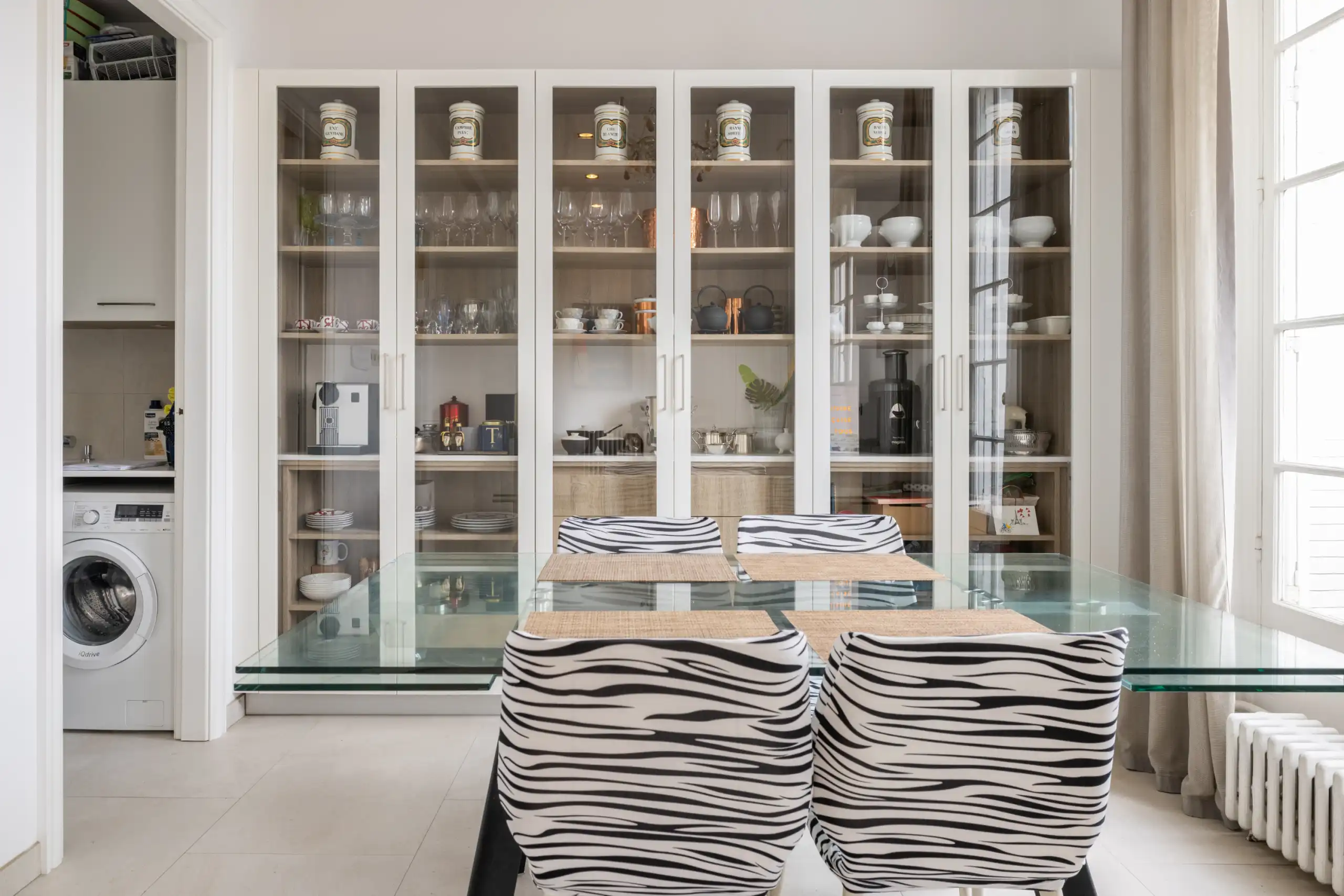 Two utility rooms (8.5 m² each) with shower facilities and a large storeroom (8 m²), accessible via the apartment's service door and a service elevator, can be purchased along with the main property. All the furnishings and decorative elements in the home are available for purchase, for a turn-key and seamless transition.