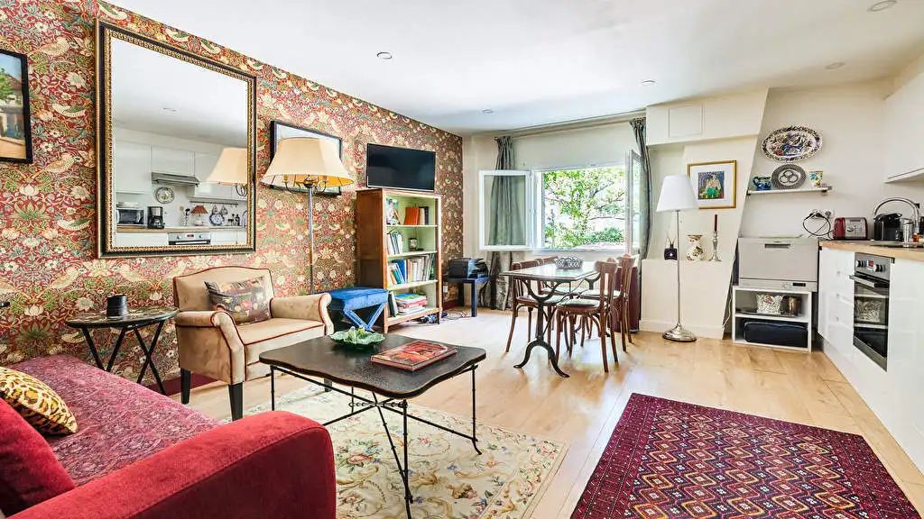 In an exceptional private residence on avenue Junot in the lovely Montmartre area, this charming two-room 42.05m² Carrez law features open, leafy views. The optimized plan includes a quiet living room with an unobstructed view of trees, a bedroom, a shower room and a separate toilet. This apartment located in on a rare and special street benefits from beautiful decoration.