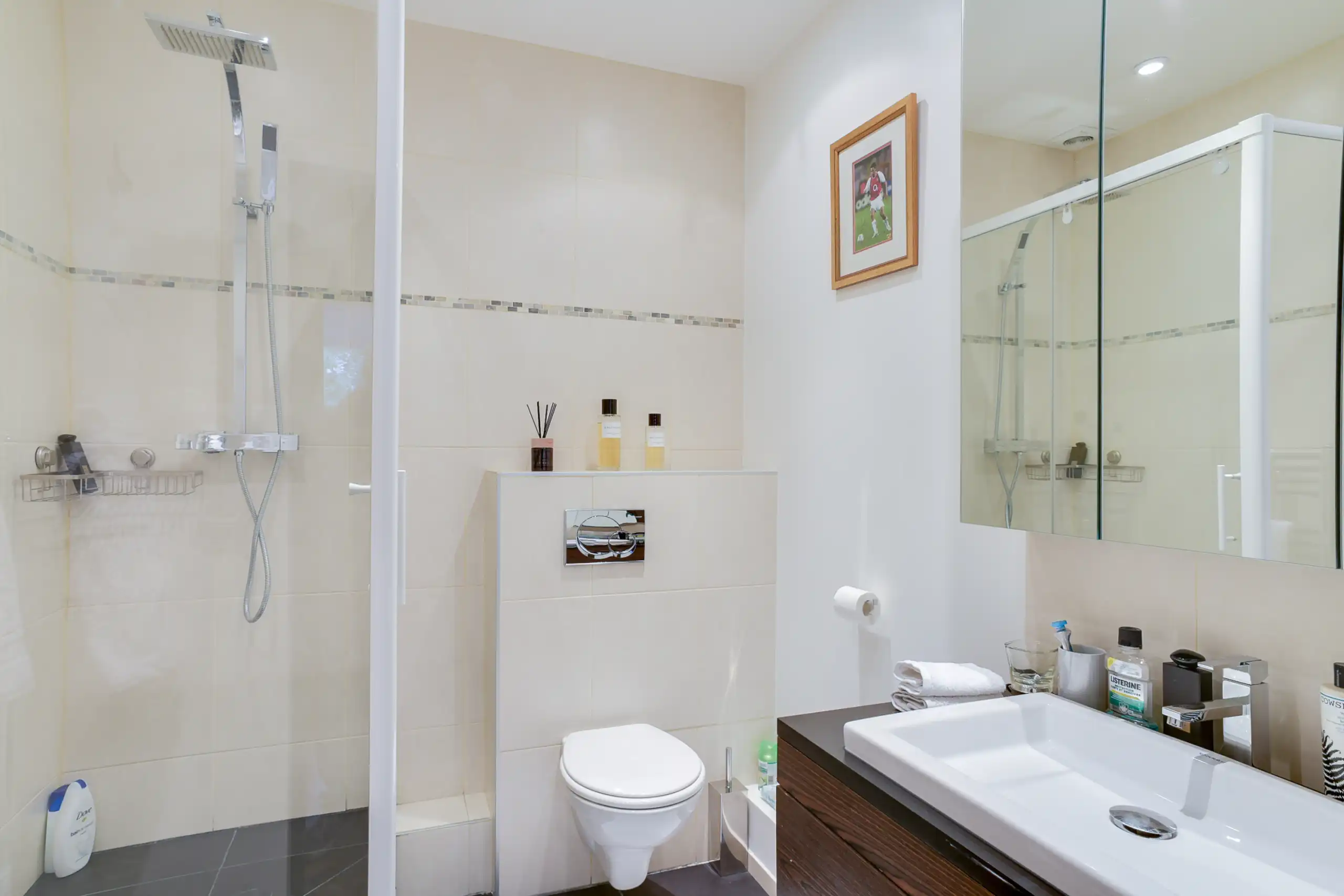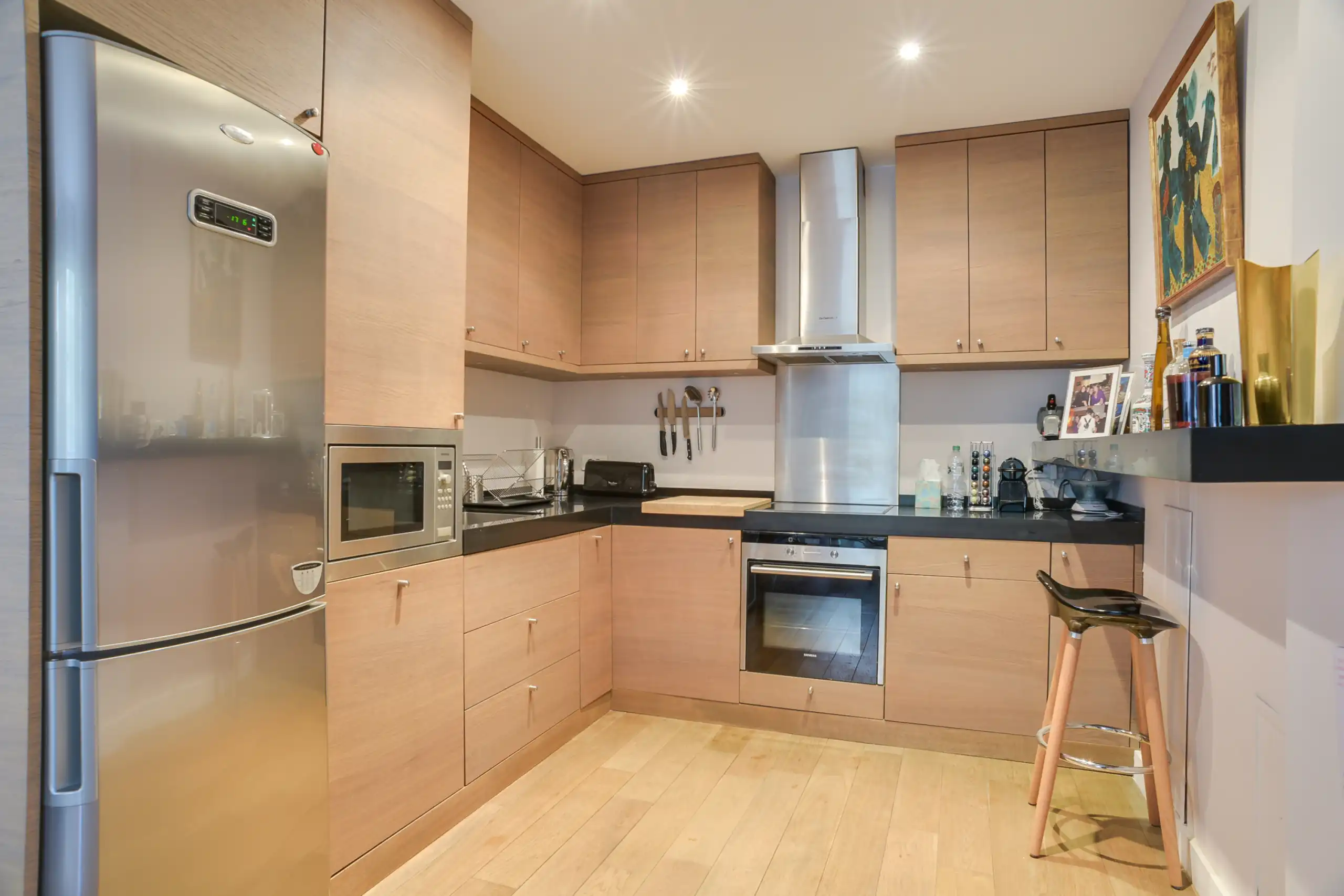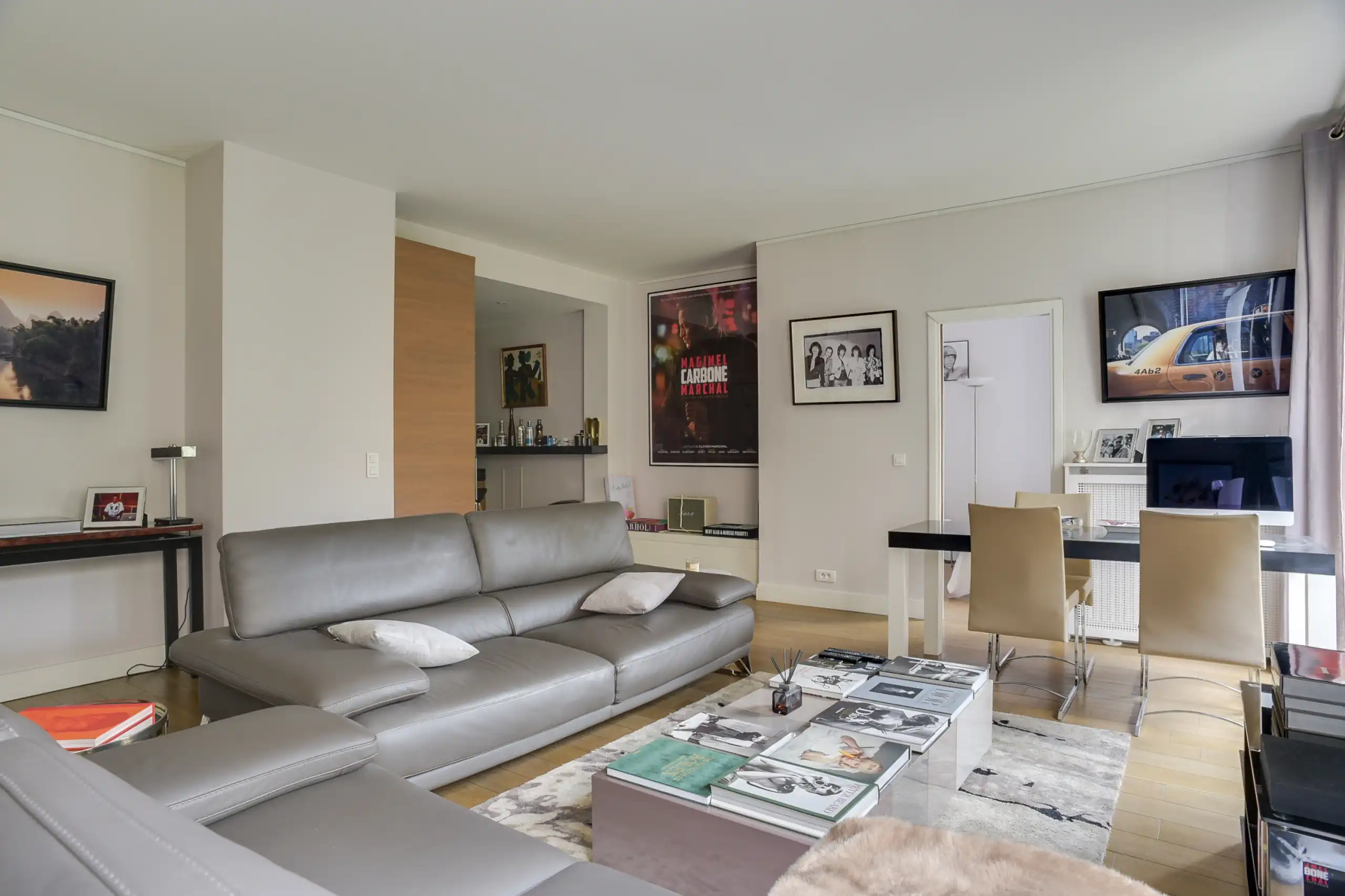 Fully renovated 82 m2 property located in an elegant, secure (doorman) building on Avenue Montaigne, directly across from the Plaza Athénée Hotel.  The third floor property (with elevator) looks out onto a garden and benefits from south facing exposure.  The bright and serene living / dining / kitchen area is thoughtfully laid out with the large kitchen tucked away but open to the living area.   The master suite has features an en-suite bath and dressing area. Extensive custom storage, and one parking space secured with staff onsite, completes the property.