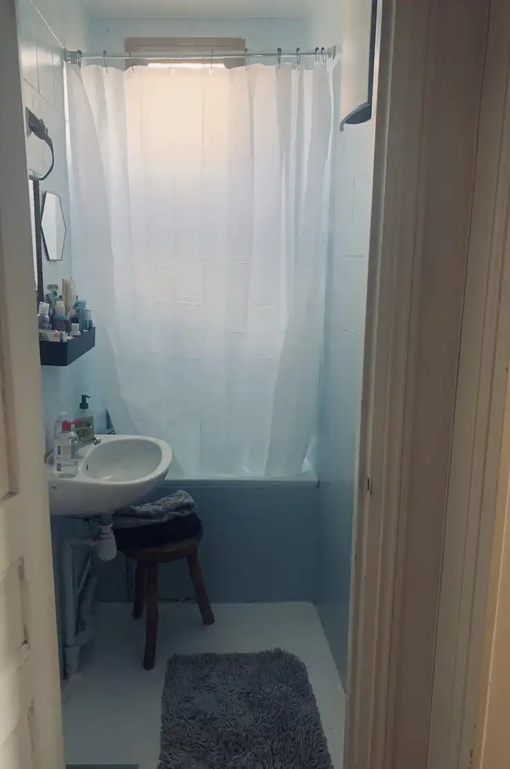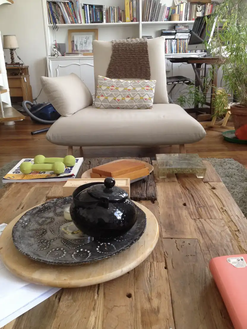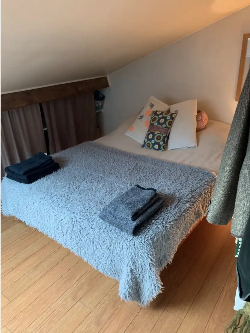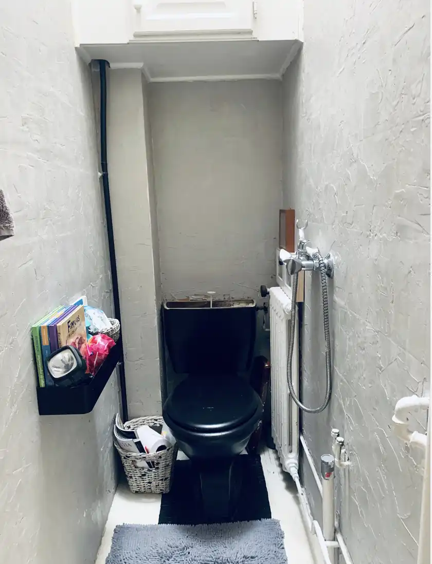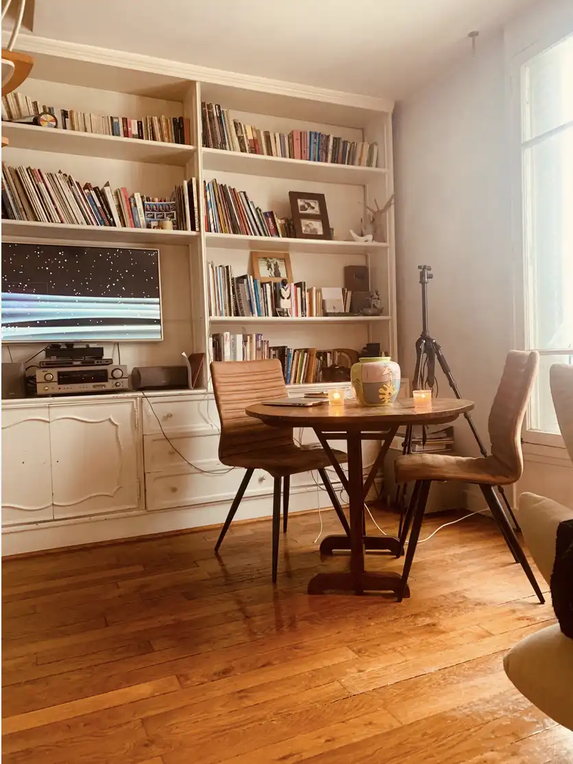 This generously sized apartment features a lot of usable space including two bedrooms a double living / dining room with book cases and two French door windows.  The small co-ownership has just 10 owners.  This duplex apartment is on the 4th and top floor of the building, with it's top level located under the beams of the roof.