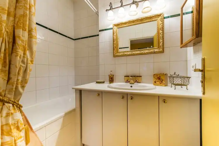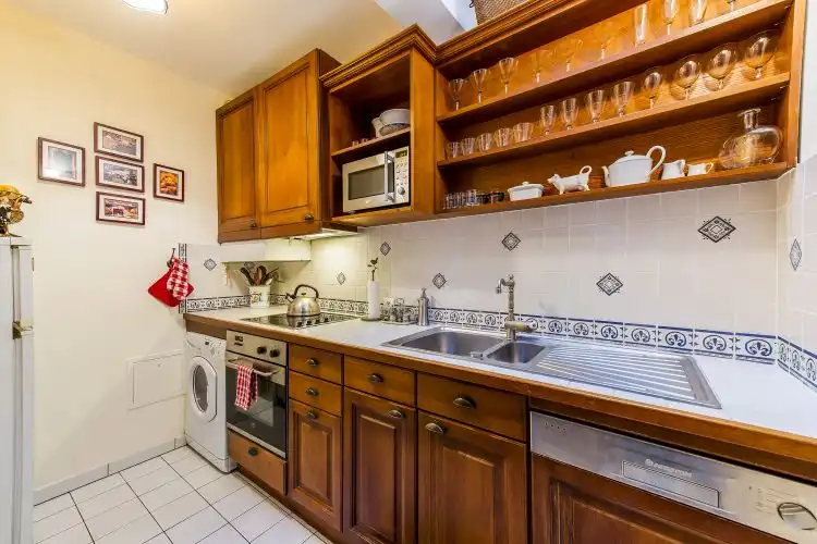 The property is on the 3rd and top floor of an 18th century stone building without elevator and is filled with sunlight from both the windows and the skylights. The apartment has been renovated with high quality materials while preserving its original charm and the floor plan makes maximum use of the space.  The entry hall includes the WC and the living dining/area is adjacent to the large fully equipped kitchen. The bedroom has ample storage space and an en suite bath.  The apartment is in excellent condition and can be purchased fully furnished.