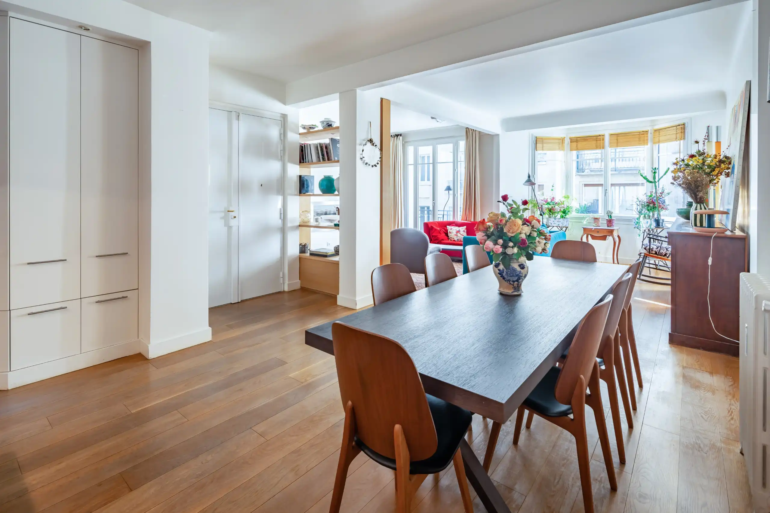 The apartment is entered through a high quality fichet double armored door. The entrance, kitchen and pantry areas have an open plan to offer a vast unified space for a dining room and a large convivial kitchen. This generous space represents the heart of the apartment for daily family life.