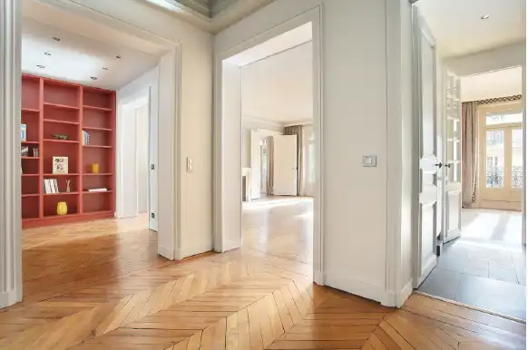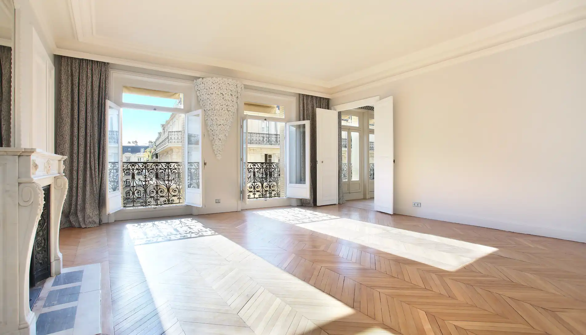 Close to George V Avenue, in a stone building with beautiful common areas, superb apartment of 171 sqm Loi Carrez. Located on the 4th floor (with elevator), the apartment benefits from beautiful volumes and an open view.