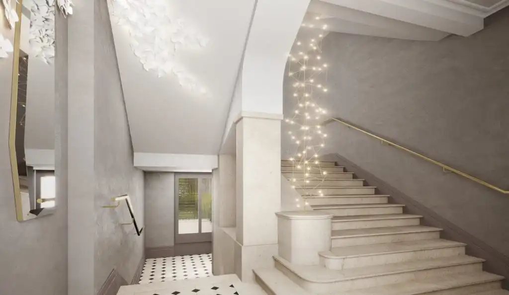 Hotel Nicolai is classified as a historic building located in the heart of a central district, the 4th arrondissement. The historic project is undergoing a renovation, mixing history and modernity. Floors made in natural stone, in checkerboard or in terracotta tiles, ironwork railings, moulded ceilings or wooden beams are being restored, reworked and brought back to life.