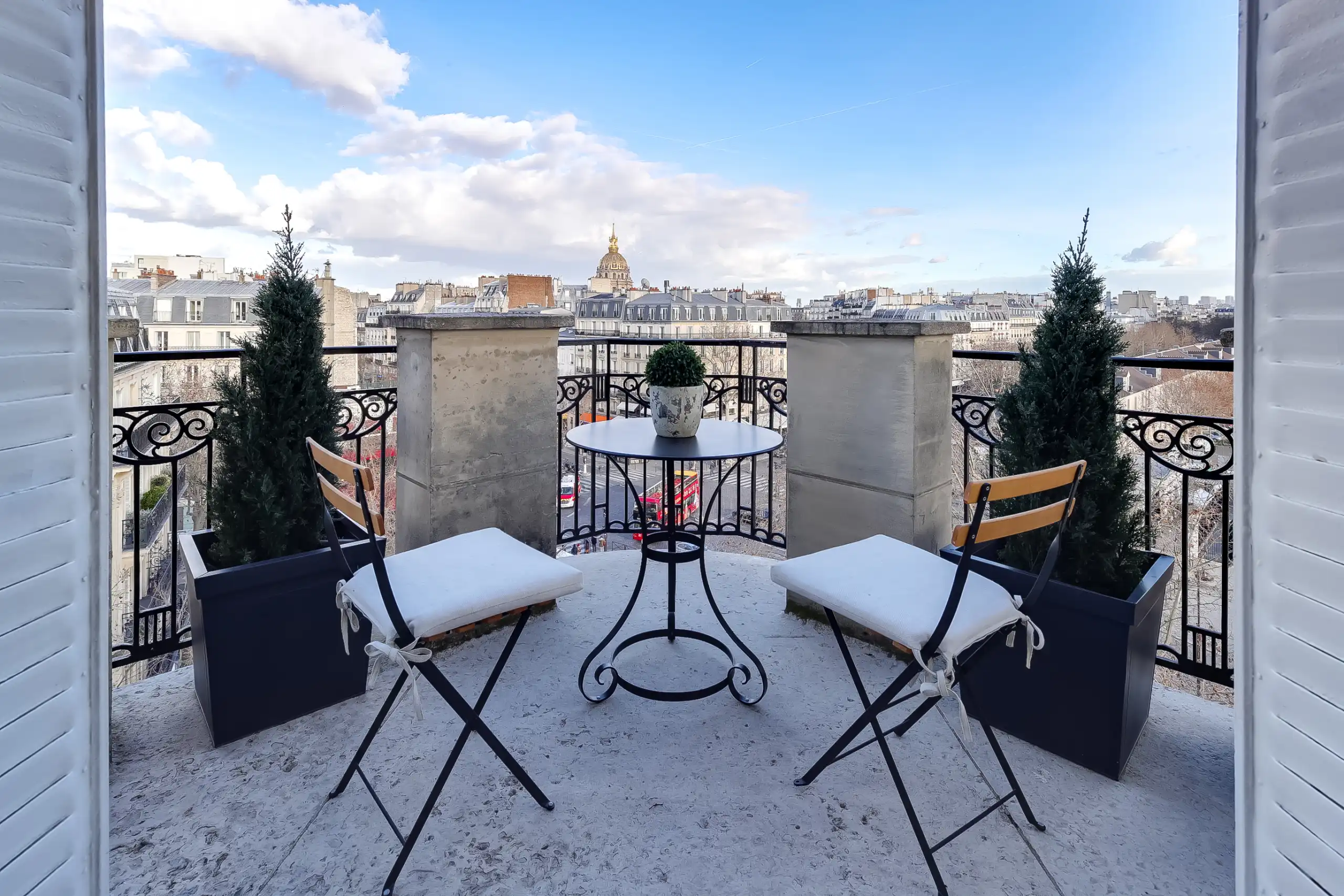 4 bed, 3 bath perfectly renovated property with extensive terraces accessed from every room (except 7th floor bedroom), and sweeping views of monuments including Invalides, Ecole Militaire, the Eiffel Tower, San Sulpice and Montmartre.  Sold in pristine condition with furnishings of the highest calibre.  Air conditioning throughout.