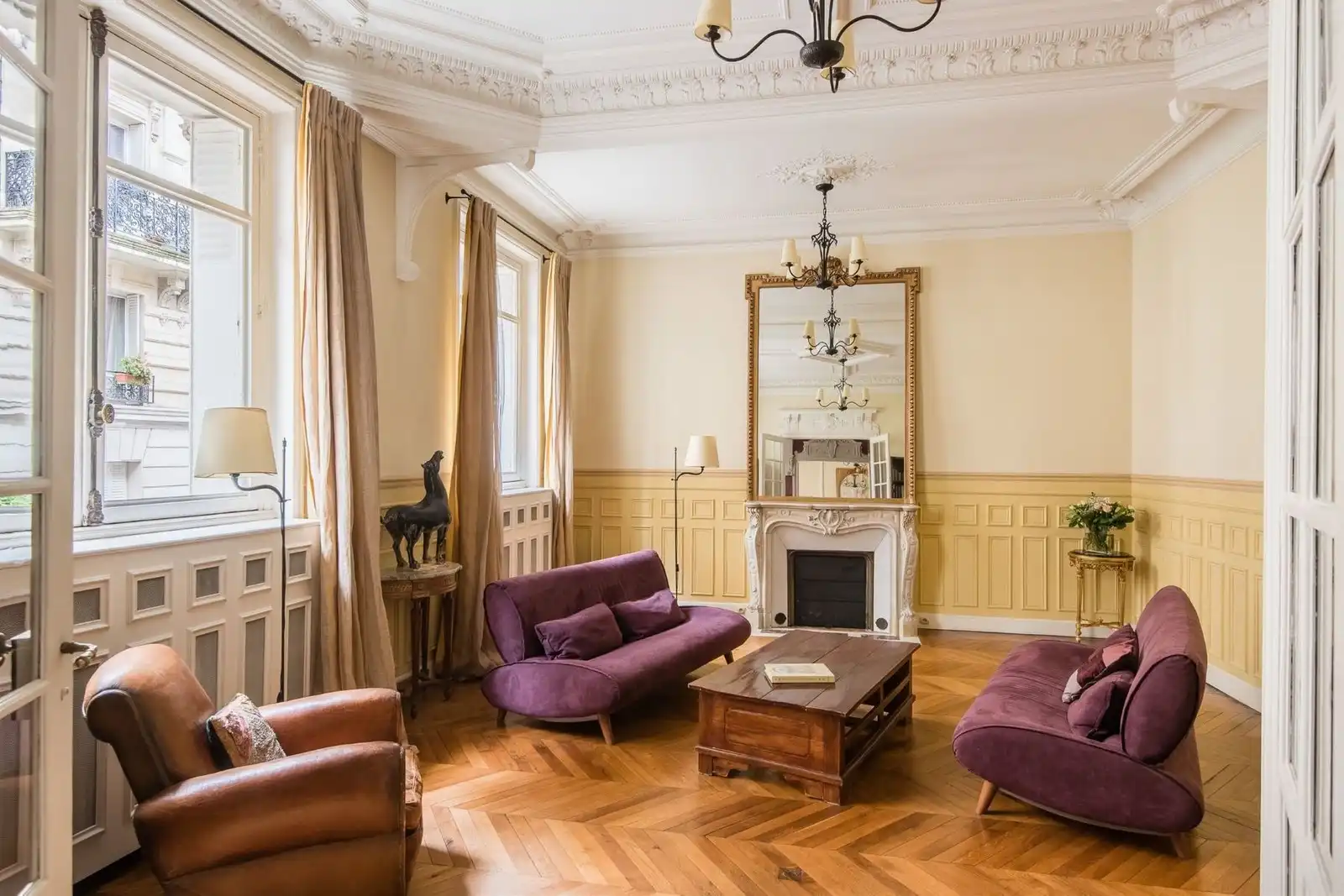 Two steps away from the Luxembourg Gardens, in a quiet area, close to shops and some renowned schools, a 300 sq.m (3,229.2 sq.ft) town house. It comprises the following: On the basement level – a vast equipped eat-in kitchen, a pantry, a laundry. Raised ground floor comprises a nice entry with the main stairway serving the floors, two vast living rooms with 3.5m of ceiling height. On the 1st floor: a landing/library, two vast bedrooms each with a shower room. On the 2nd floor: a study with a skylight window, a vast bedroom with its bathroom and a dressing room, a further bedroom with its shower room. The stairway leads to a 65 sq.m (699 sq.ft) rooftop (the project of a vegetated deck is being examined). All the original features such as parquet flooring, moldings, ironwork are conserved. This town house is in perfect condition.