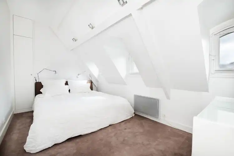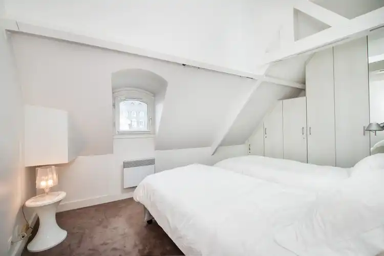 Perched high atop the historic royal compound, this fully renovated, two bedroom, one bath duplex apartment occupies the top two floors and offers a lovely views over a quiet, private courtyard garden to one side and on the other side overlooks a gorgeous private mansion Colbert de Villacerf on rue de Turenne.  If you've always wanted a turn-key investment property or pied-a-terre with a prestigious address in Paris, this apartment, with a floor surface of 82,40 m² (893ft²) (61 m² under roof (656 ft² ), is move-in ready and offers location, location, location.