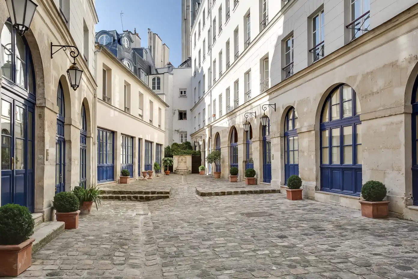 Set on a quiet street in the most desirable area of Saint Germain in Paris’ 6th arrondissement, just off rue Dauphine, this property is just steps from the Seine River and Pont Neuf. A two-minute walk in either direction puts you on Ile de la Cité or the upscale shops of the 6th.   Possiblity to buy both properties for 1,945,000€.