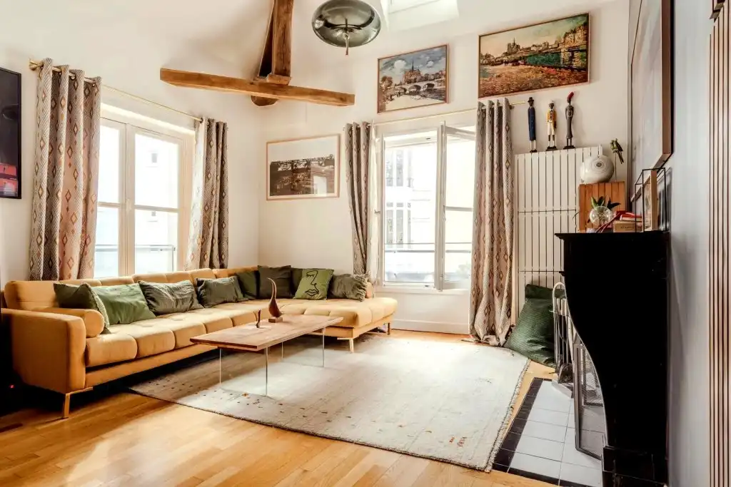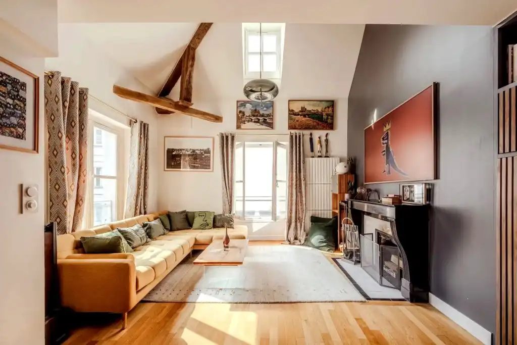 Tucked above the Seine on one of Paris's most storied quays, this off-market duplex penthouse occupies the top two floors of a grand 18th-century building with beautifully preserved common areas. At 104 square meters across two levels, it offers the kind of calm and privacy that's increasingly rare this close to the water.