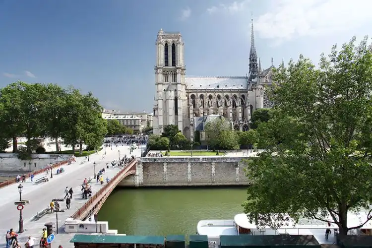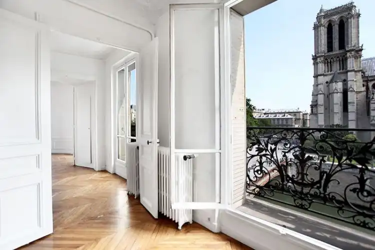 This spacious and elegant 160m2 3rd floor residence (with elevator) boasts amazing views on Notre Dame and the Seine.