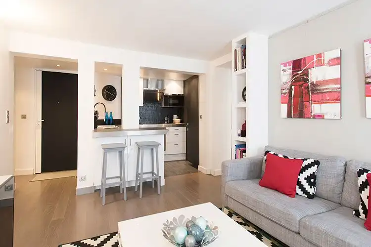 The neighborhood surrounding the apartment is filled with cafés, brasseries, shops and boutiques just outside the building's entrance, in addition to charming market streets, fabulous food shopping along the Rue de Buci and the acclaimed Musée D'Orsay nearby. Stroll down to the Seine riverfront for romantic sunsets over the water or walk to the local Saint-Germain-des-Prés metro station just one block away for easy access to every corner of the city. The beautiful and charming neighborhood provide the perfect setting for this simple and elegant apartment creating the perfect pied-a-terre or investment property.