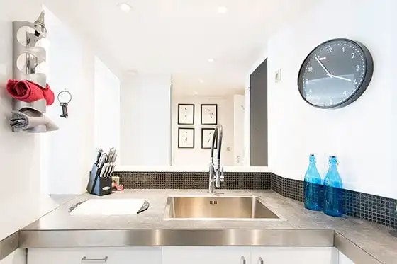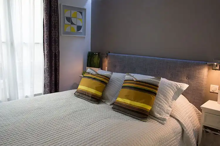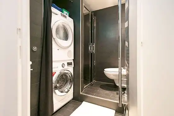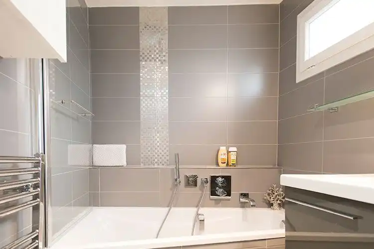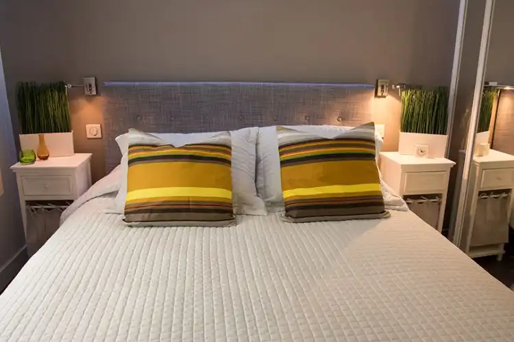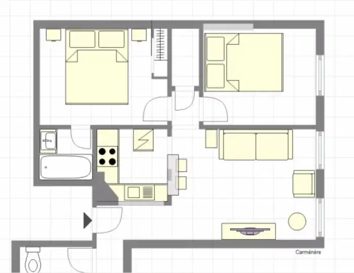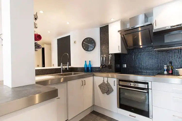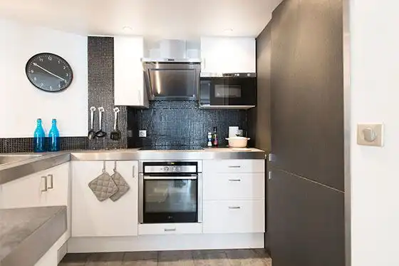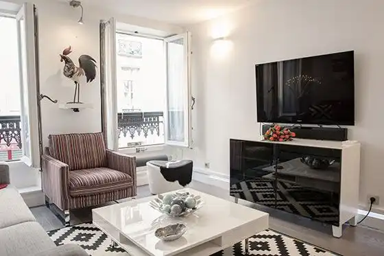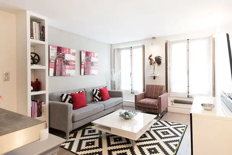 This impeccably decorated 50m2, two bedroom, two bathroom residence boasts a 2011 remodel and an absolutely stellar location. This bright and airy apartment is located on the first floor (walk up) of an 18th century stone building. Double glazed windows provide lovely neighborhood views and plenty of light. The modern kitchen is well-designed with everything a modern gourmand requires to to cook or entertain, while the two bathrooms are stunningly designed with polished fixtures and beautiful tile touches. The two bedrooms are are large and well appointed, with plenty of storage space.