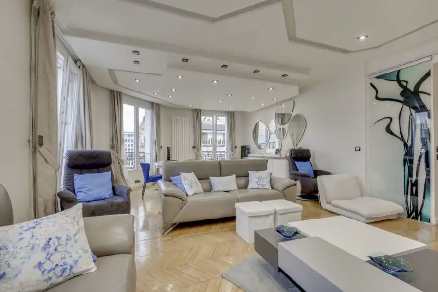 Situated within a traditional Haussmannian building, this modern apartment for sale in Paris’s 16th arrondissement is superbly located just 50 metres from the charming Jardins de l’Avenue Foch and just a four-minute walk from the Arc de Triomphe. Avenue des Champs-Élysées, one of the world’s most famous shopping streets, is eight minutes’ walk away too.