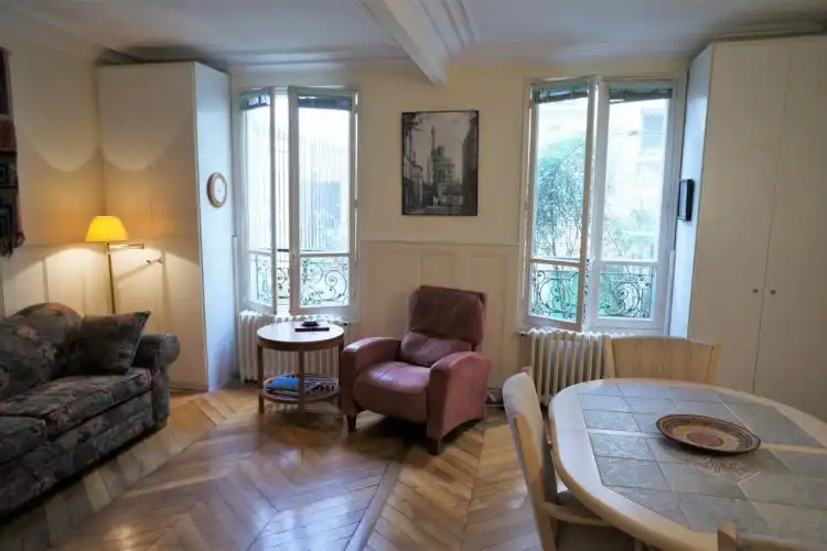 Silence reigns in this leafy courtyard apartment located just steps from Luxembourg Garden.