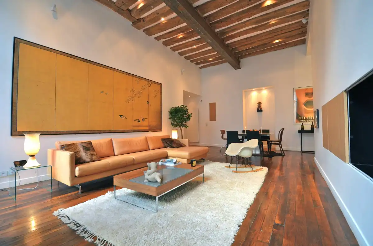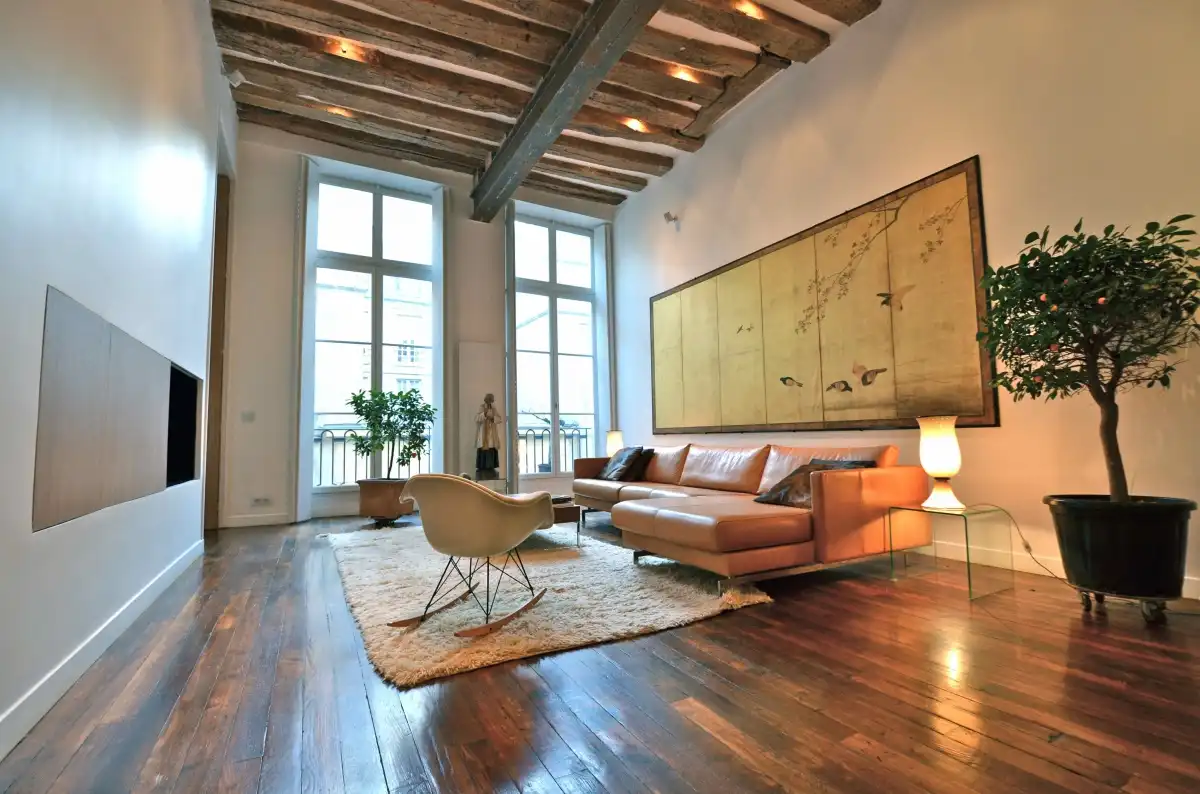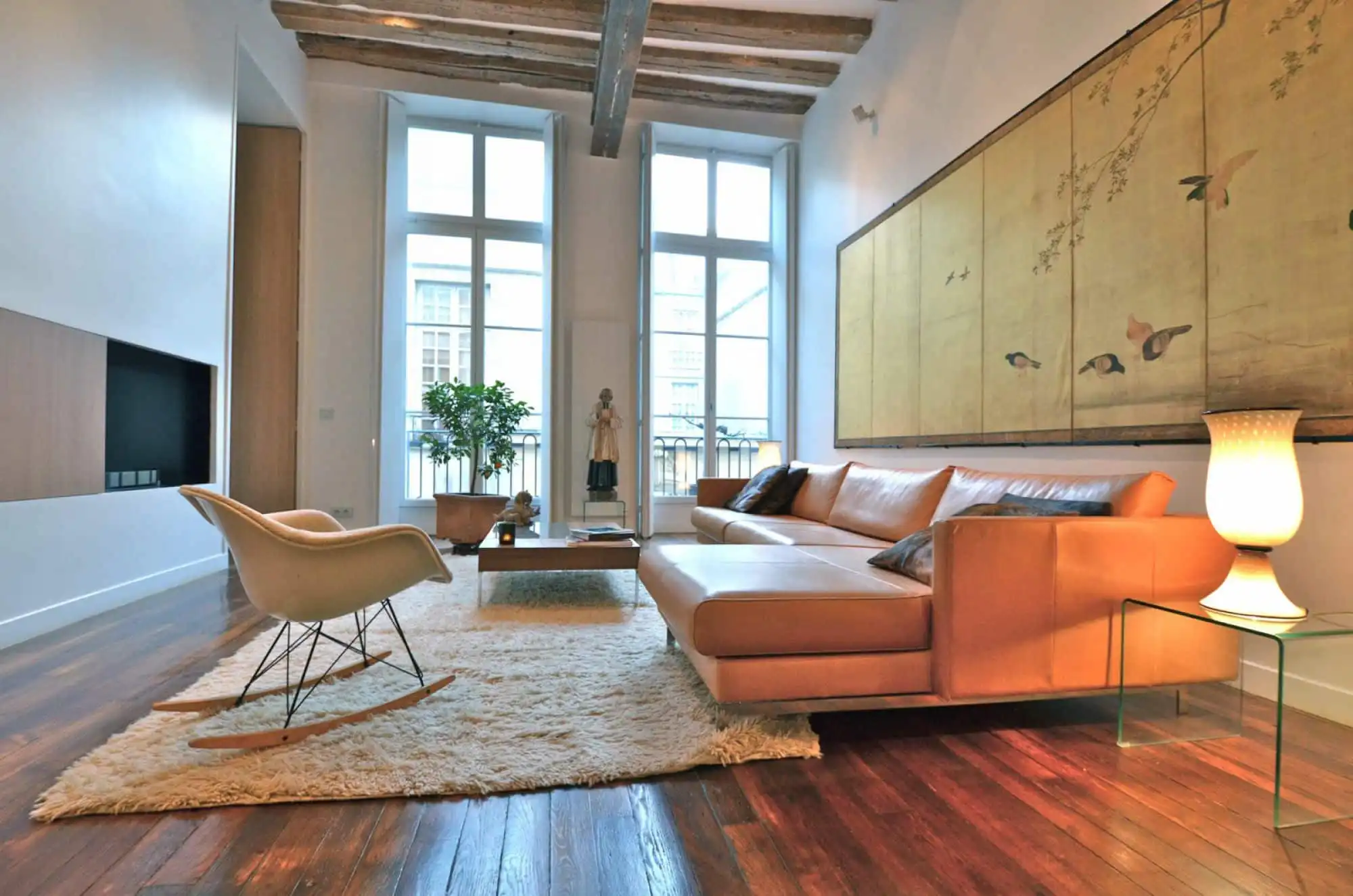 This beautifully renovated 80 m2 apartment features a large living room with high ceilings and original beams, a fully equipped kitchen, two bedrooms and two bathrooms. The property is on the 1st floor (2nd floor American) and benefits from a sunny southern exposure.