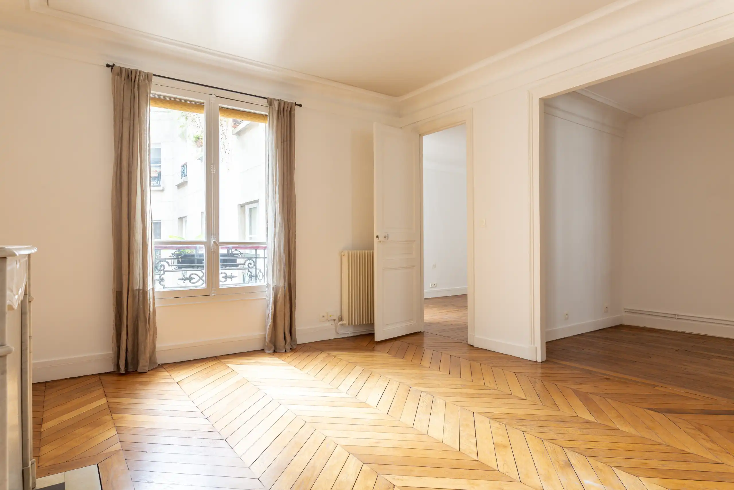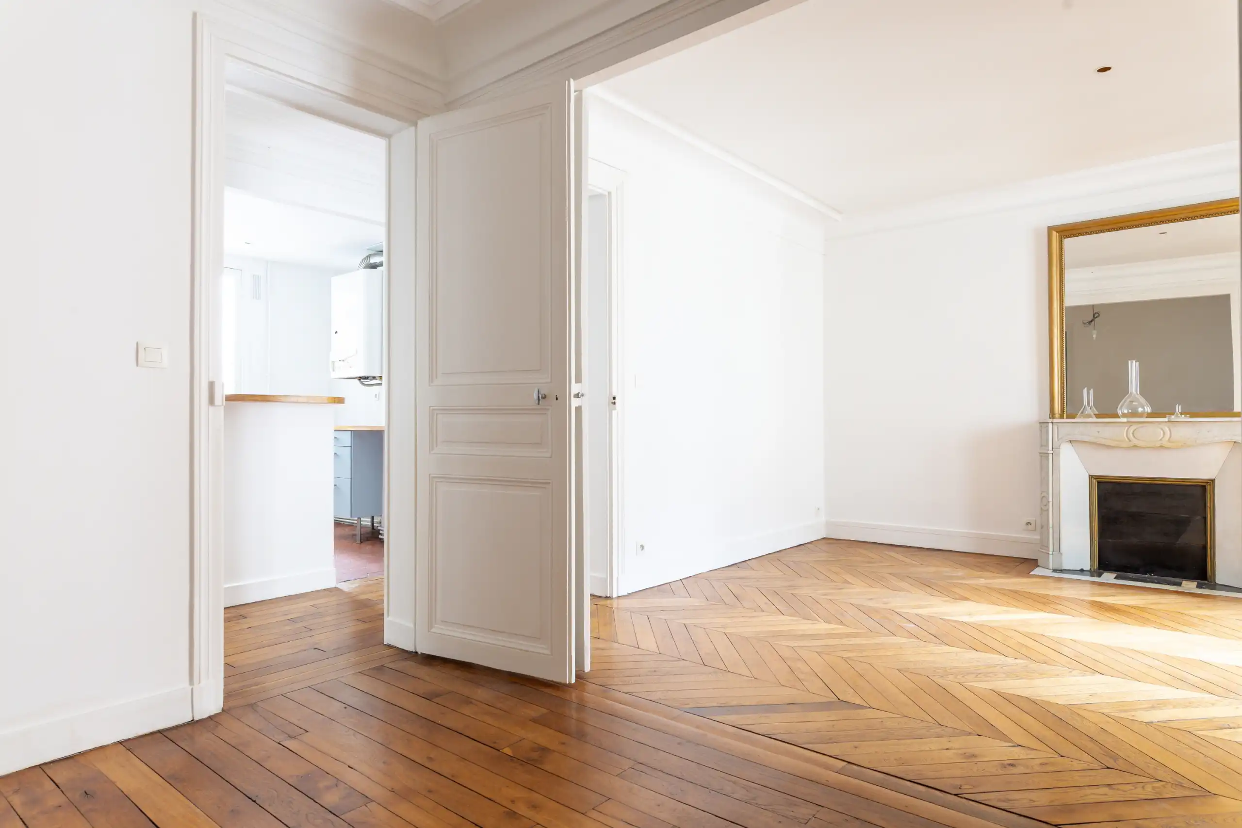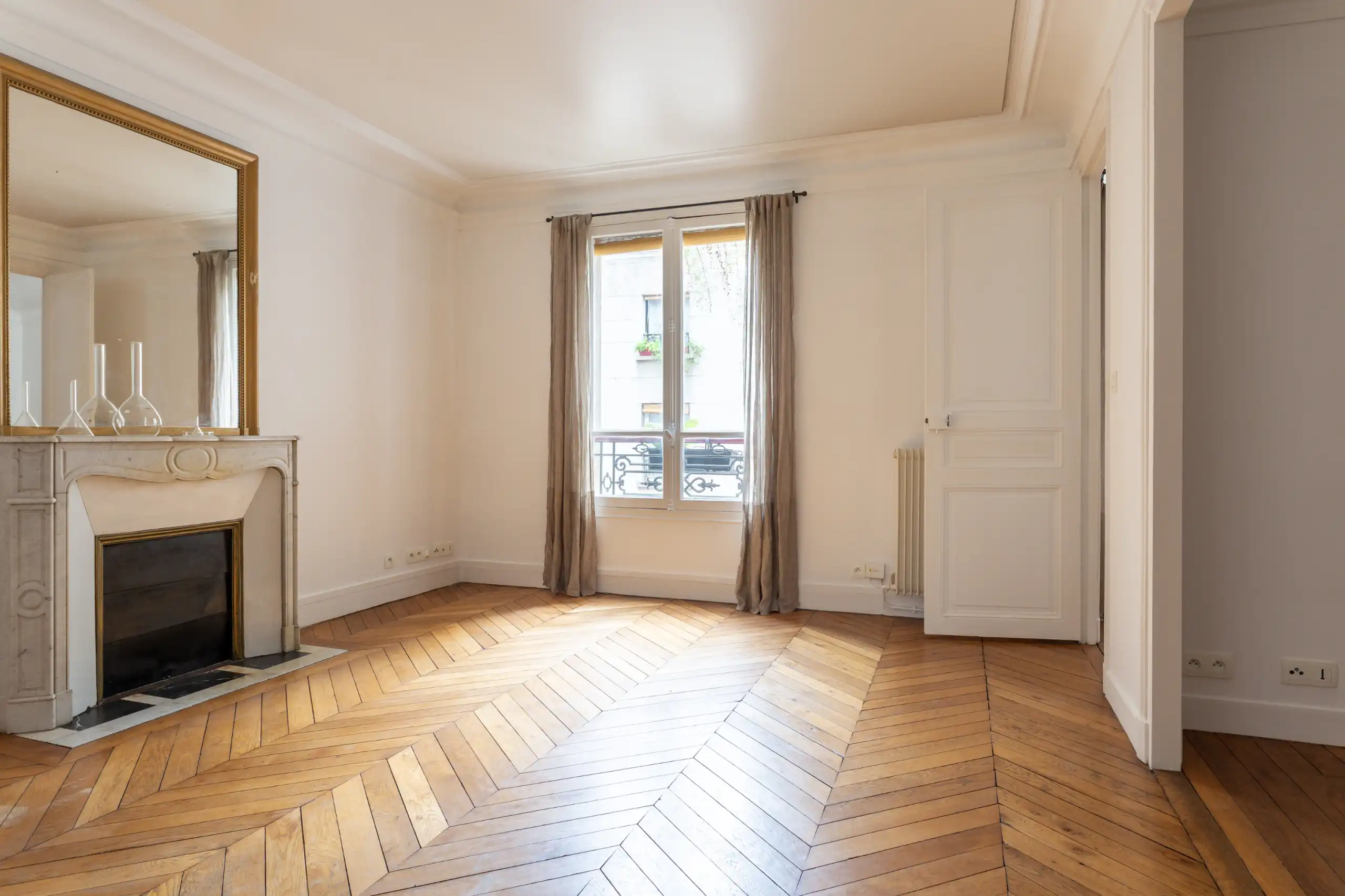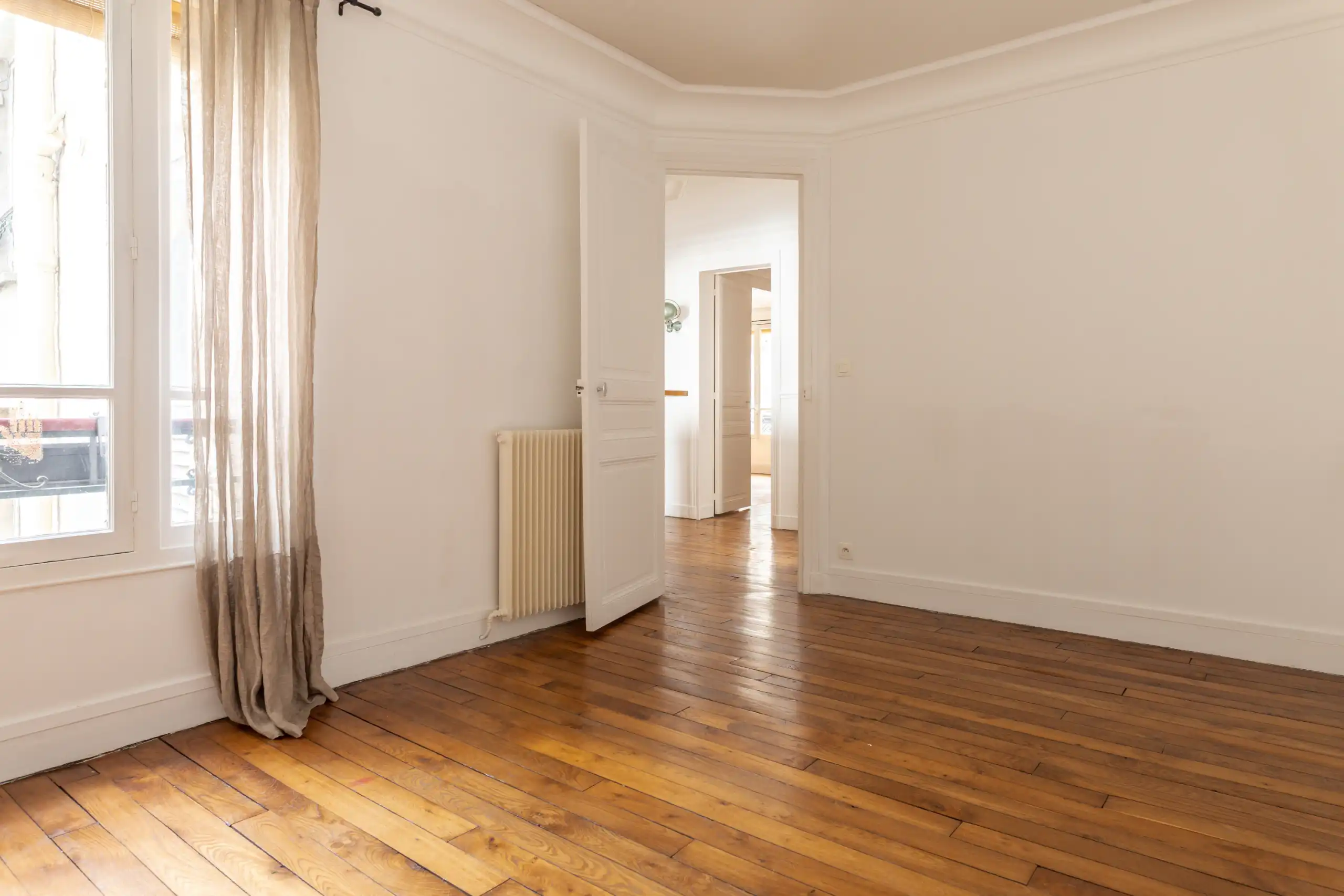 Two bedrooms / two baths: This charming and classic property features all of its original features including wood flooring, moldings, and fireplaces.  The 4th floor property (with elevator) overlooks large courtyards for a quiet, tranquil feeling in the heart of Paris.  Two well-separated bedrooms, an open kitchen, living room, dining room, and bathroom. Bright and airy, with windows in all four directions and no vis-à-vis (or windows facing onto the property), this feels like a much larger property.