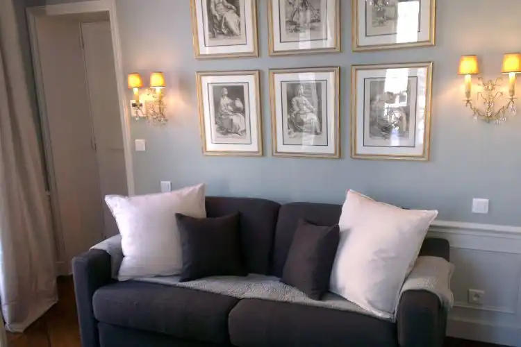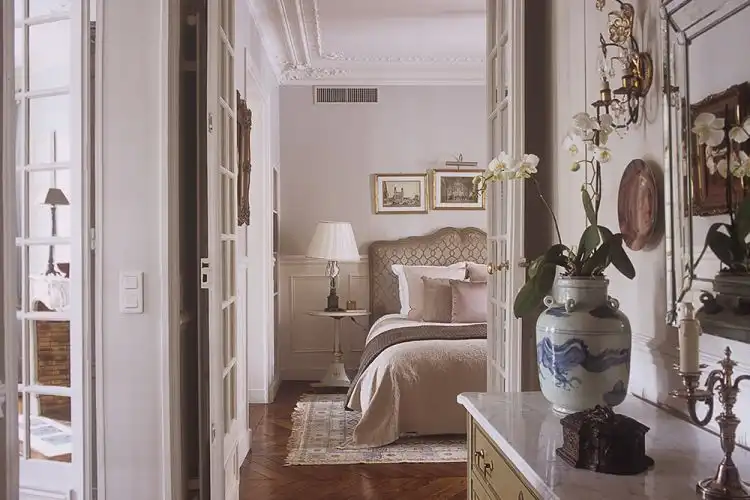 This couple had their heart set on a monument view from the windows of a three bedroom apartment in a period building.  The Hausmmannian property they chose has a stunning view of the Arc de Triomphe, and even includes a terrace, a rarity in this neighborhood.  The new look a local designer gave it has transformed it into a truly stunning property.
