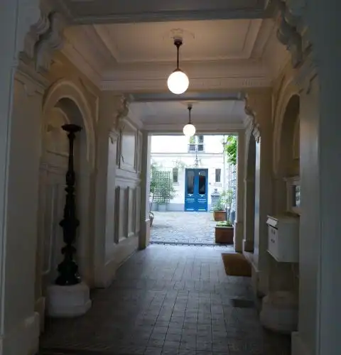 Located in the heart of one of the most sought after areas in Paris, the historic Carré des Antiquaires in the 7th arrondissement, is on the 4th floor  without elevator of a 19th century building that overlooks a cobblestone courtyard.