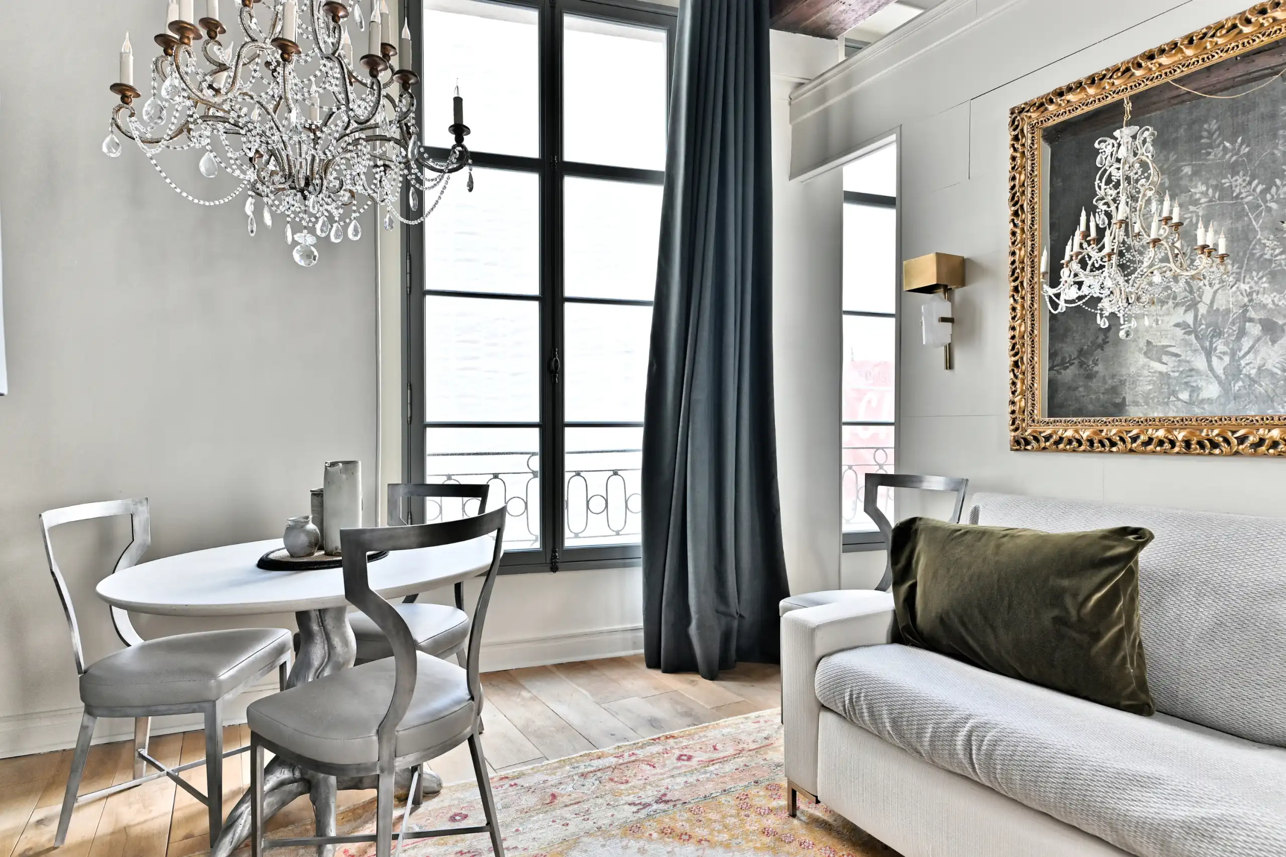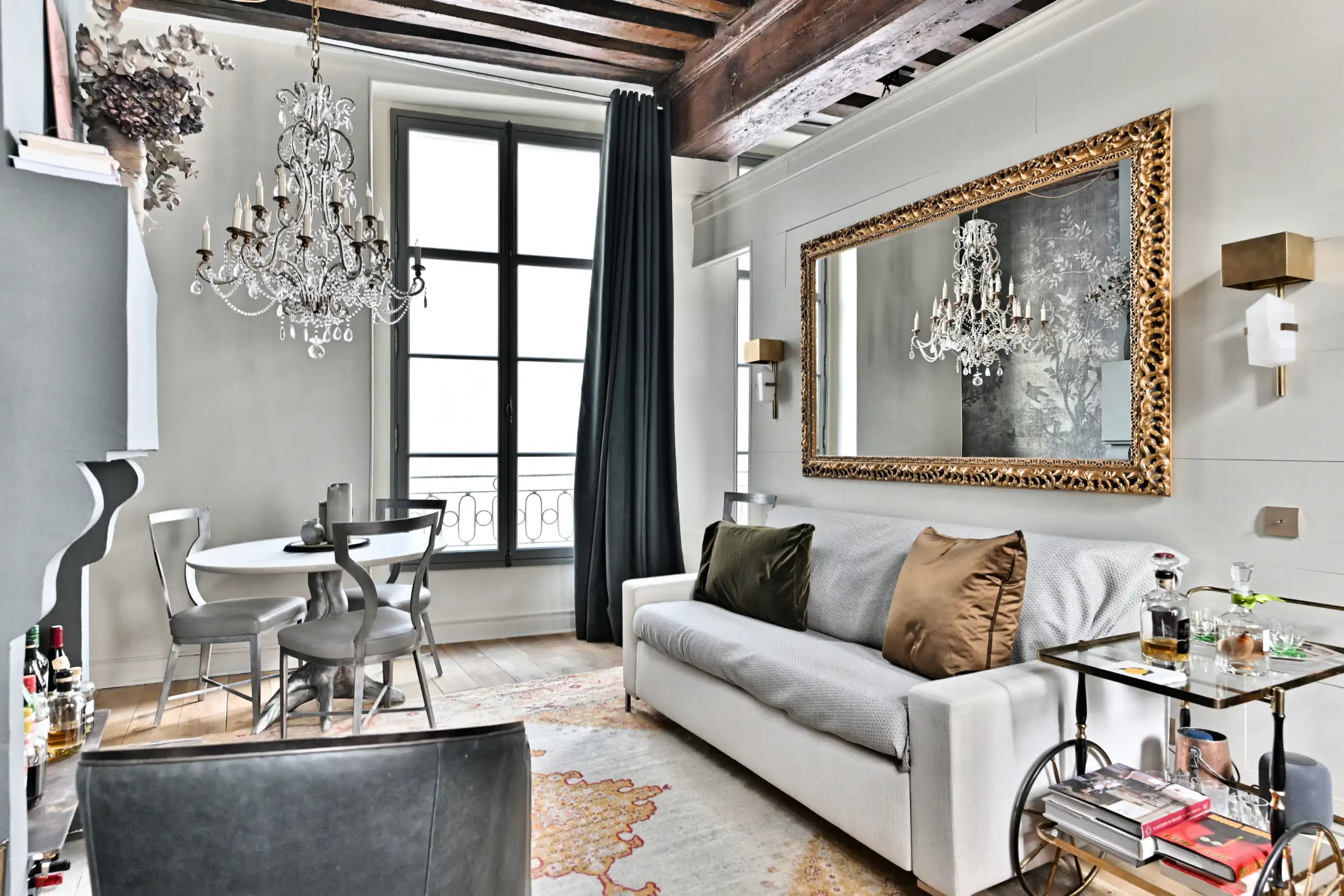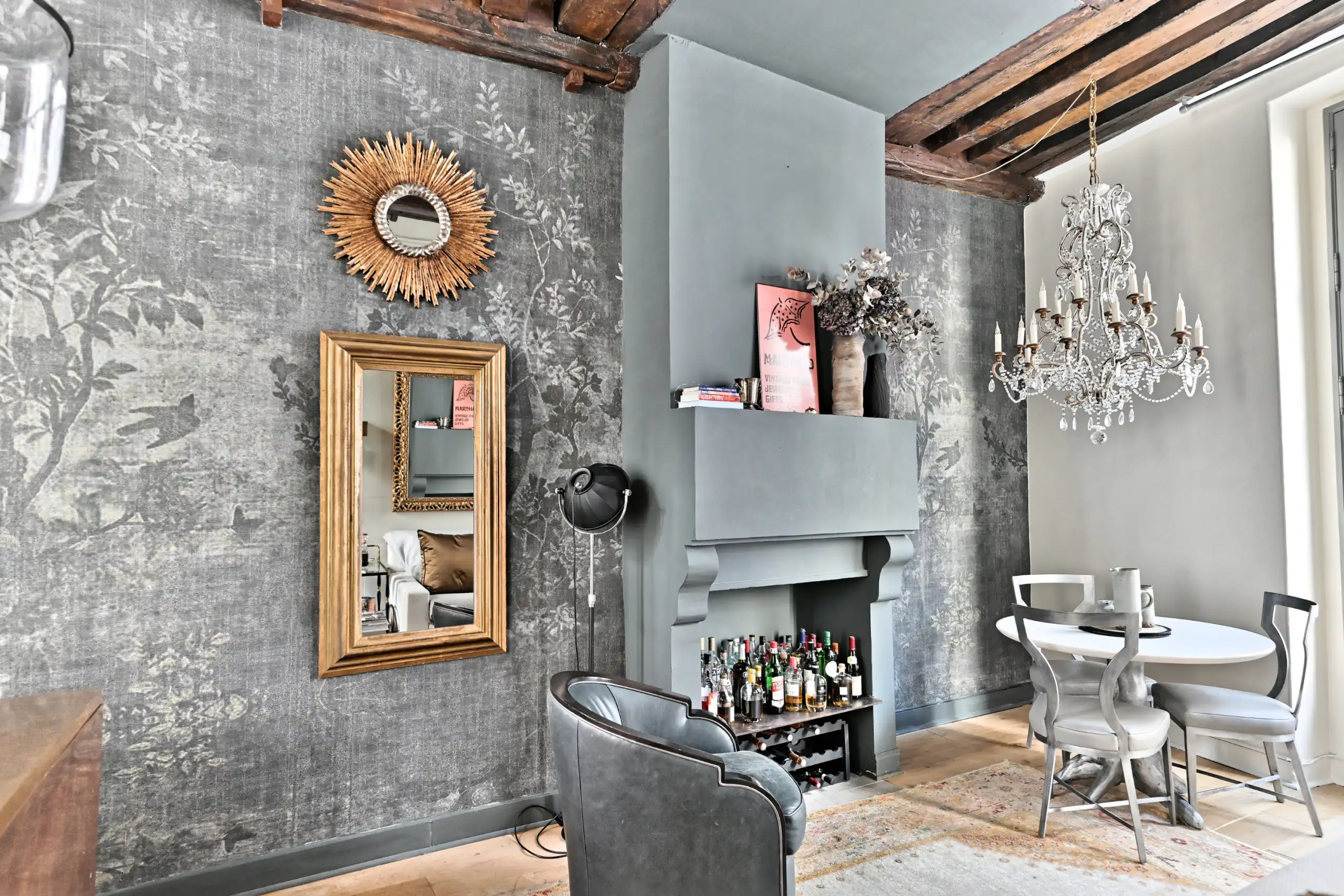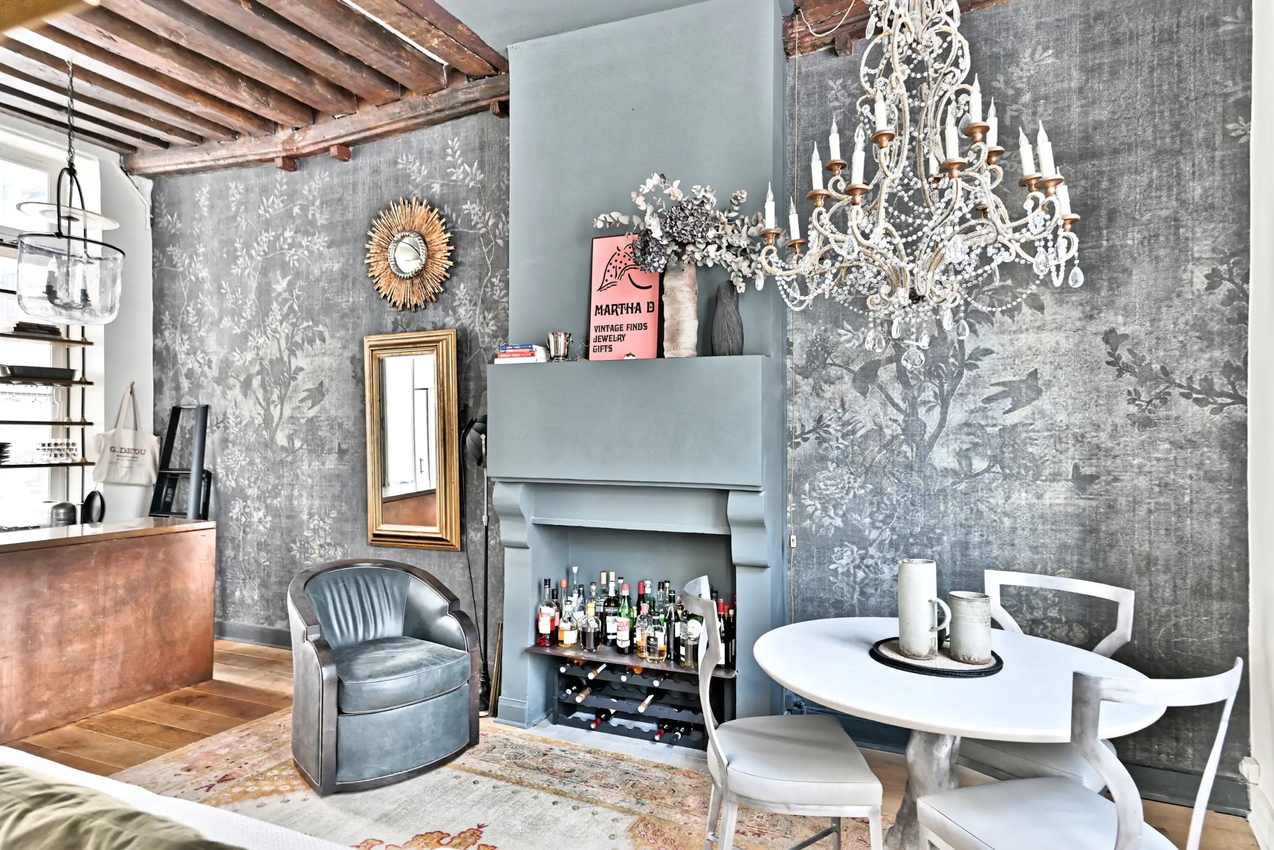 The property was an artist’s atelier transformed into a 39m2 1 bedroom apartment well located in the Village St Paul district of the 4th ardt. Rue du Petit Musc is a historic street dating to the 16th century and has recently become a pedestrian street. This property is double facing street/courtyard on the 1st floor out of 4, accessible by a stairwell. The courtyard façade was just renovated and the planted courtyard is very