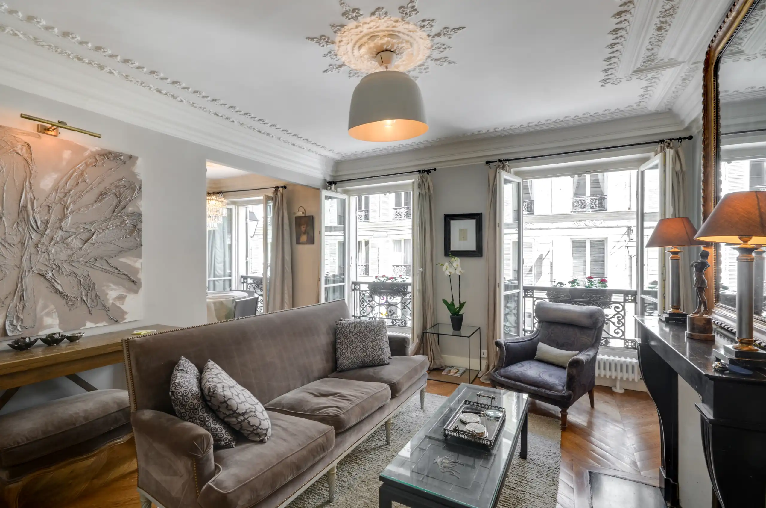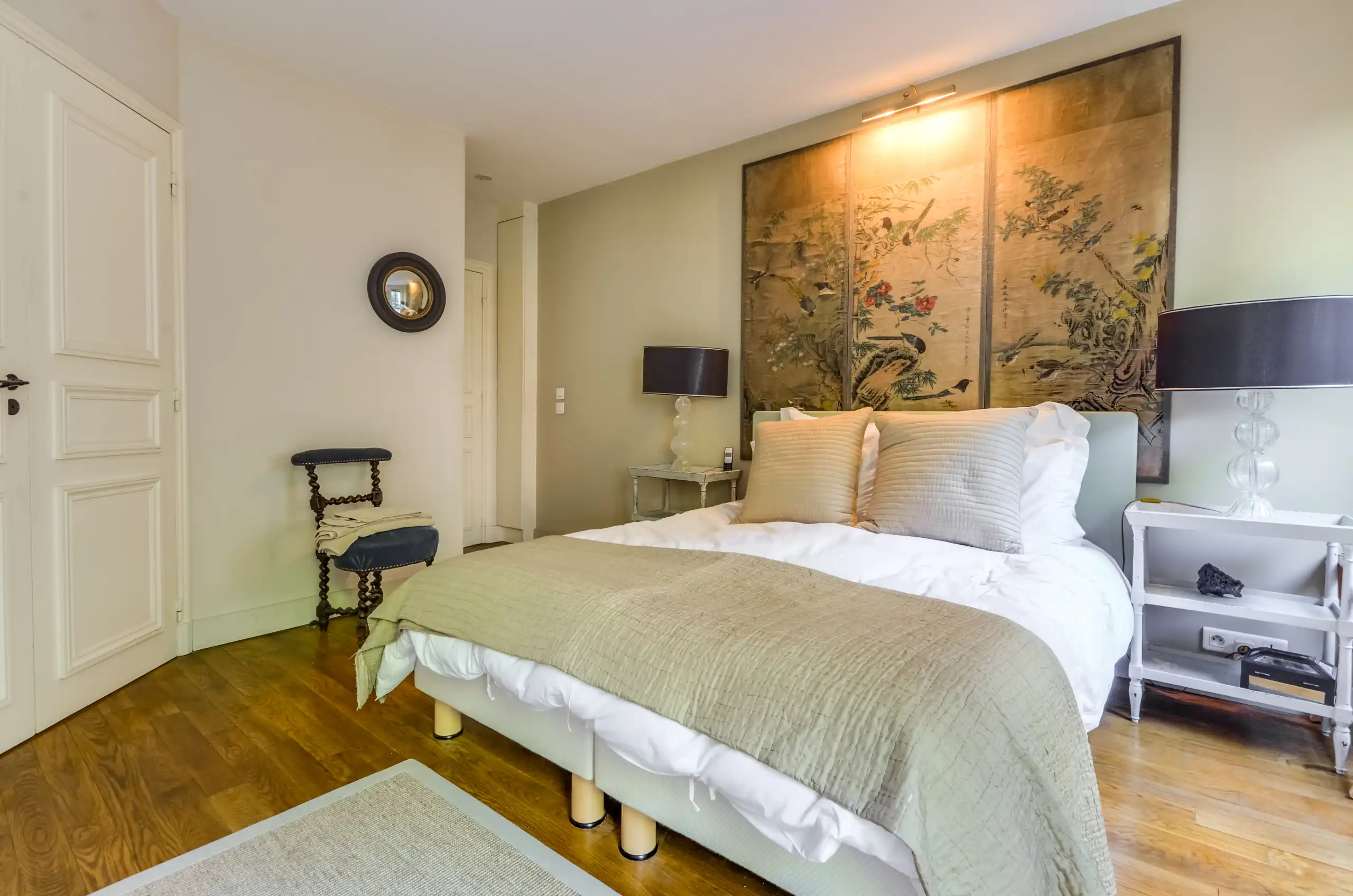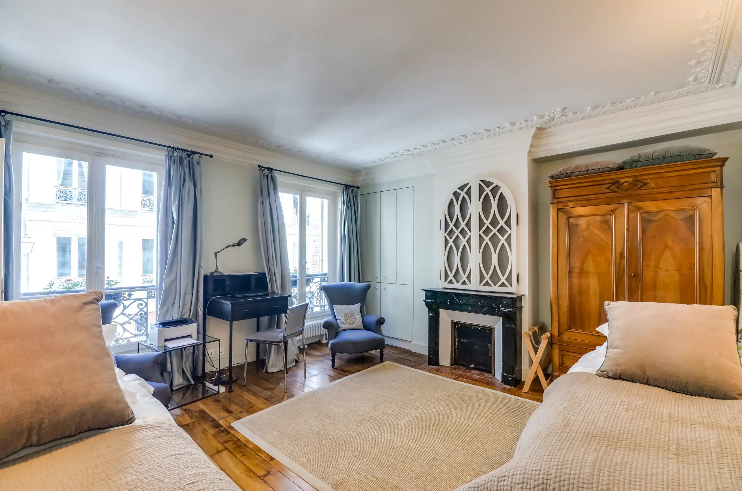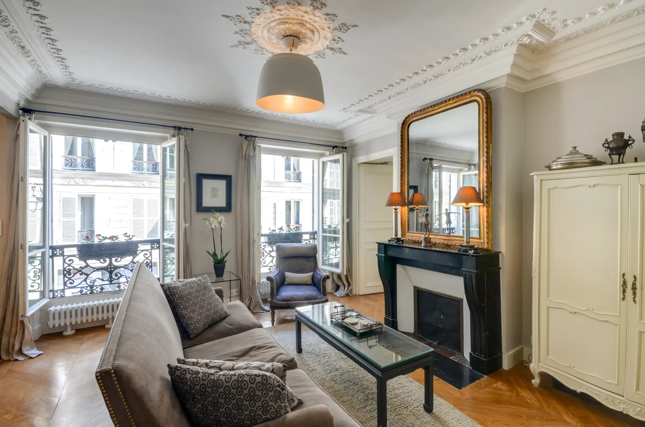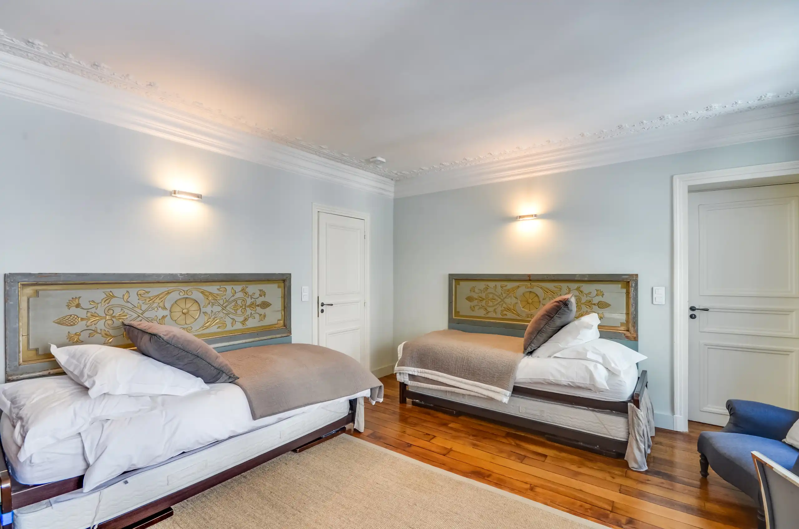 This beautiful fractional property is located on the first floor (American 2nd) of a charming 18th century building in the Marais.  The 807 square foot 2-bedroom, 2-bath apartment features a private terrace on a secluded courtyard. Nestled in the heart of the historic Marais, just a stone’s throw from the magnificent Place de Vosges, the apartment at rue Malher is the perfect spot for those seeking a relaxing and luxurious home from which to explore Paris.